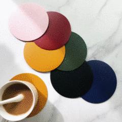 Tapete de xícara de chá de cor sólida Simples Creative Round Coaster antiderrapante impermeável pu Tapete de xícara de café de couro Tapete de isolamento térmico de dupla face