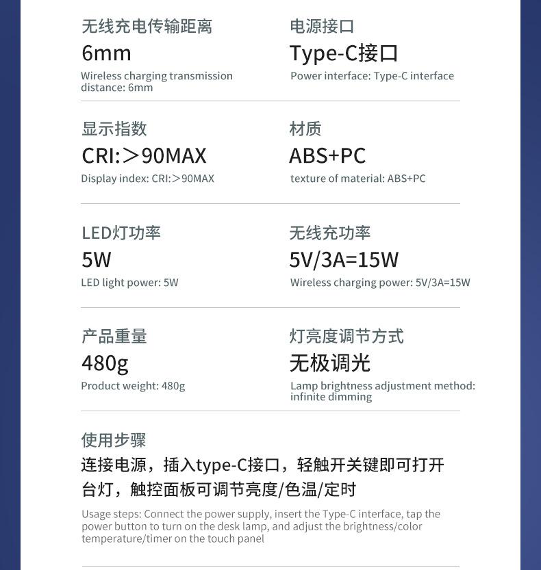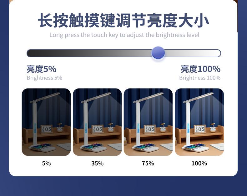 Lâmpada de mesa de leitura popular transfronteiriça Smart Touch Night Light 3 níveis de cor LED sem fio de carregamento Proteção para os olhos Lâmpada de mesa Atacado