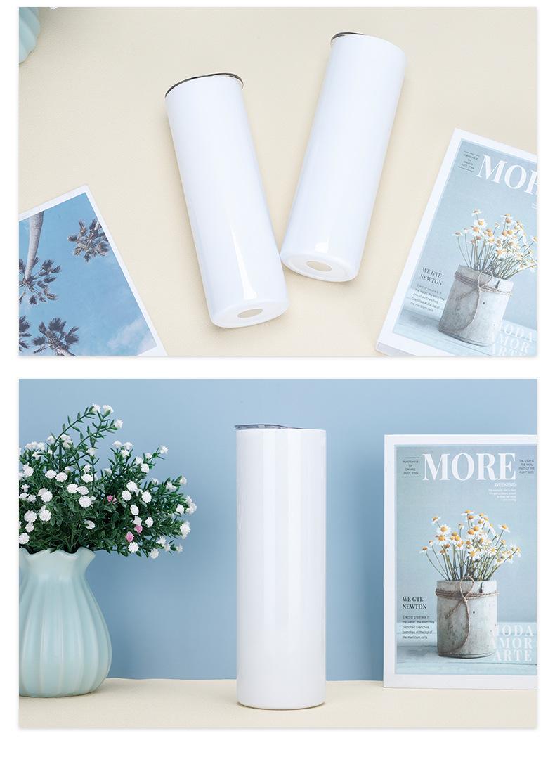 Copo portátil personalizado com transferência de calor por sublimação, copo térmico de aço inoxidável de 20 onças, canudo reto para carro, copo de gelo