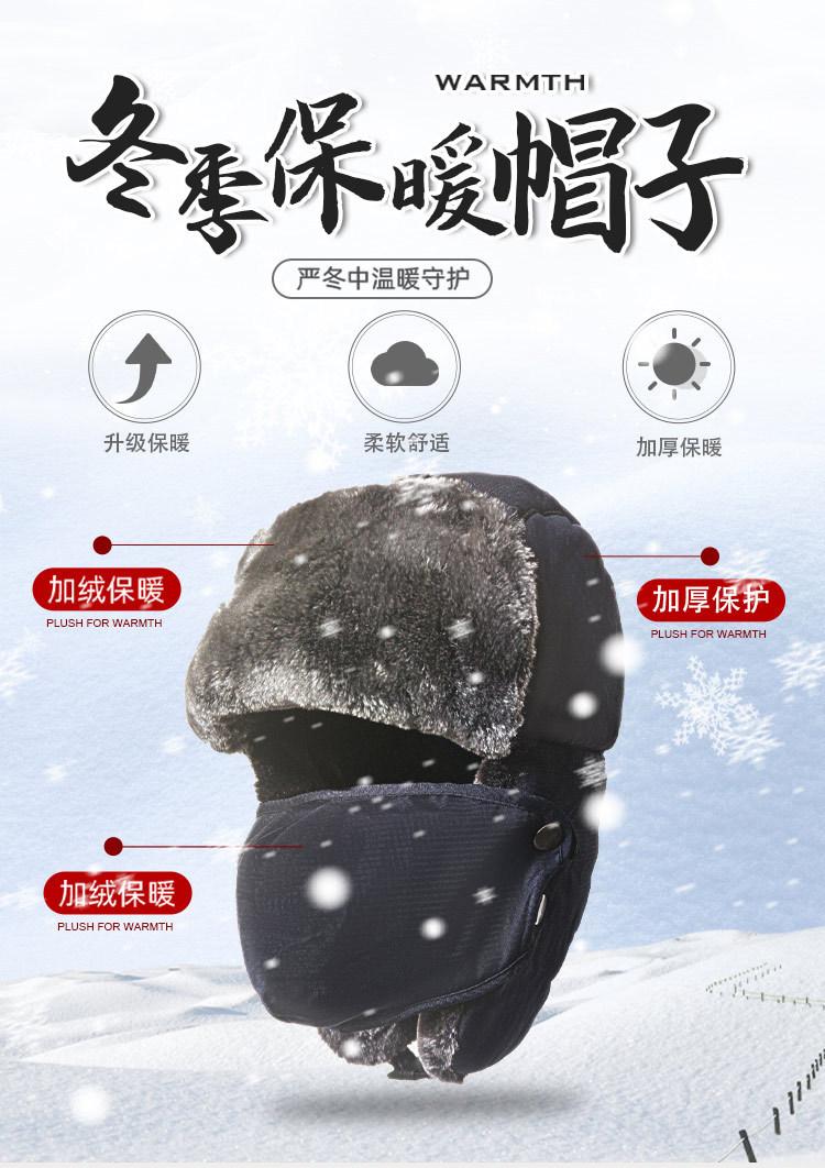 Chapéu Lei Feng Inverno Exterior À Prova de Frio e Quente Chapéu de Proteção de Orelhas para Mulheres Forrado com Lã Espessado Proteção Facial Chapéu À Prova de Vento Chapéu de Pelúcia para Homens