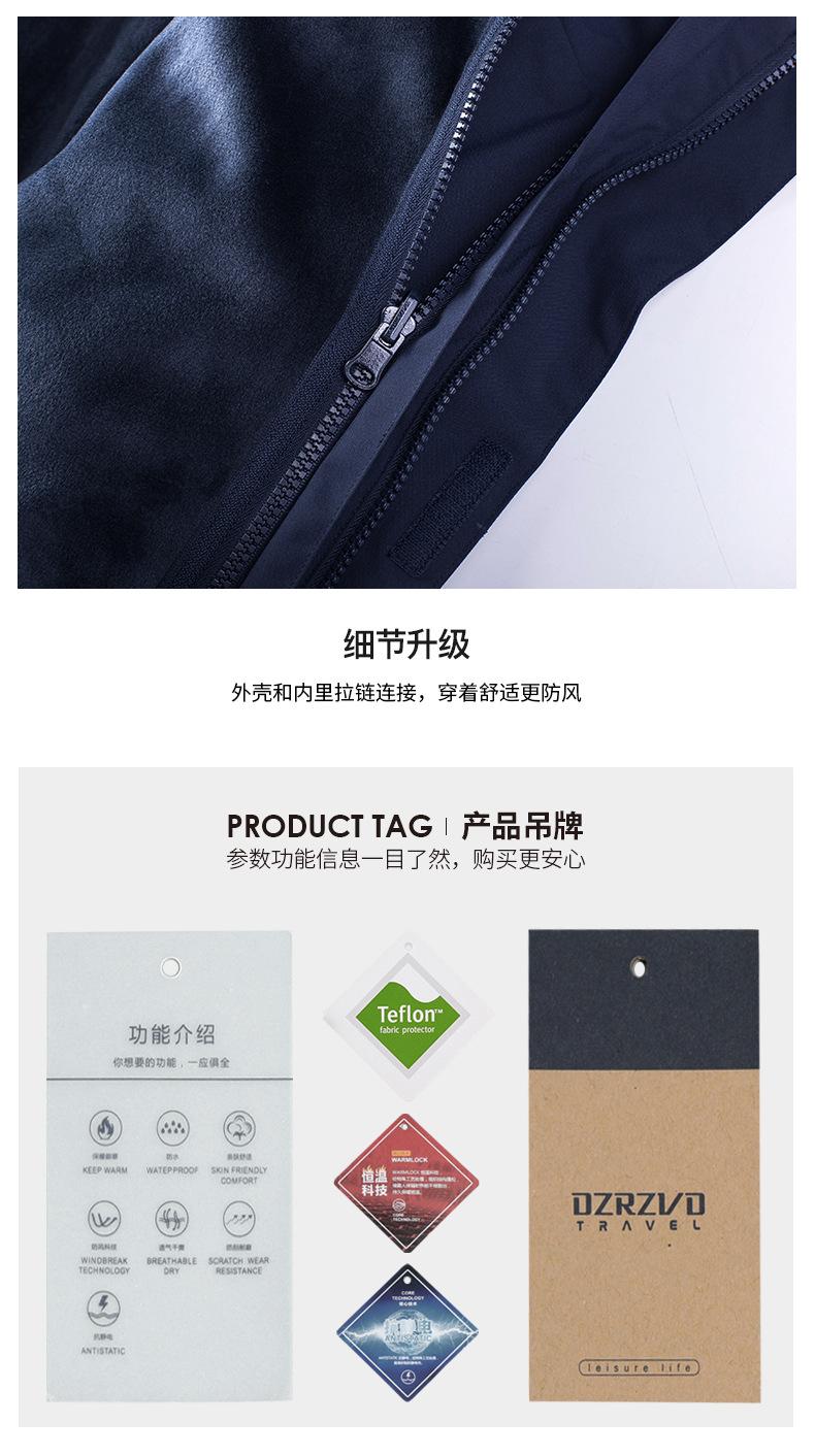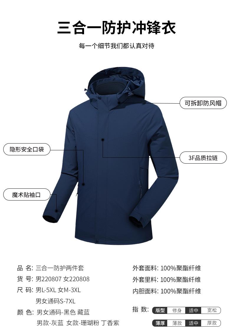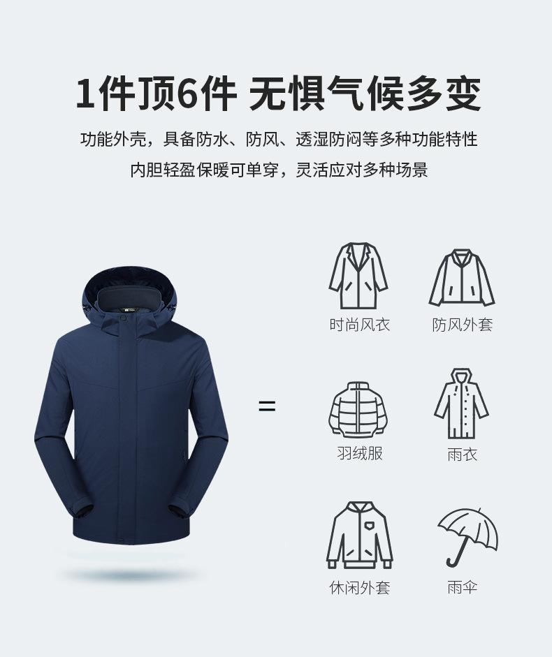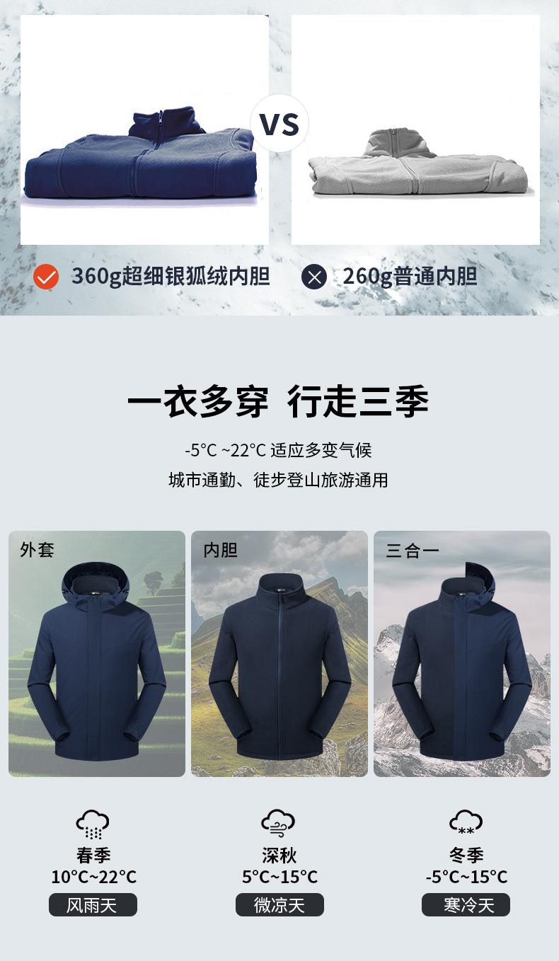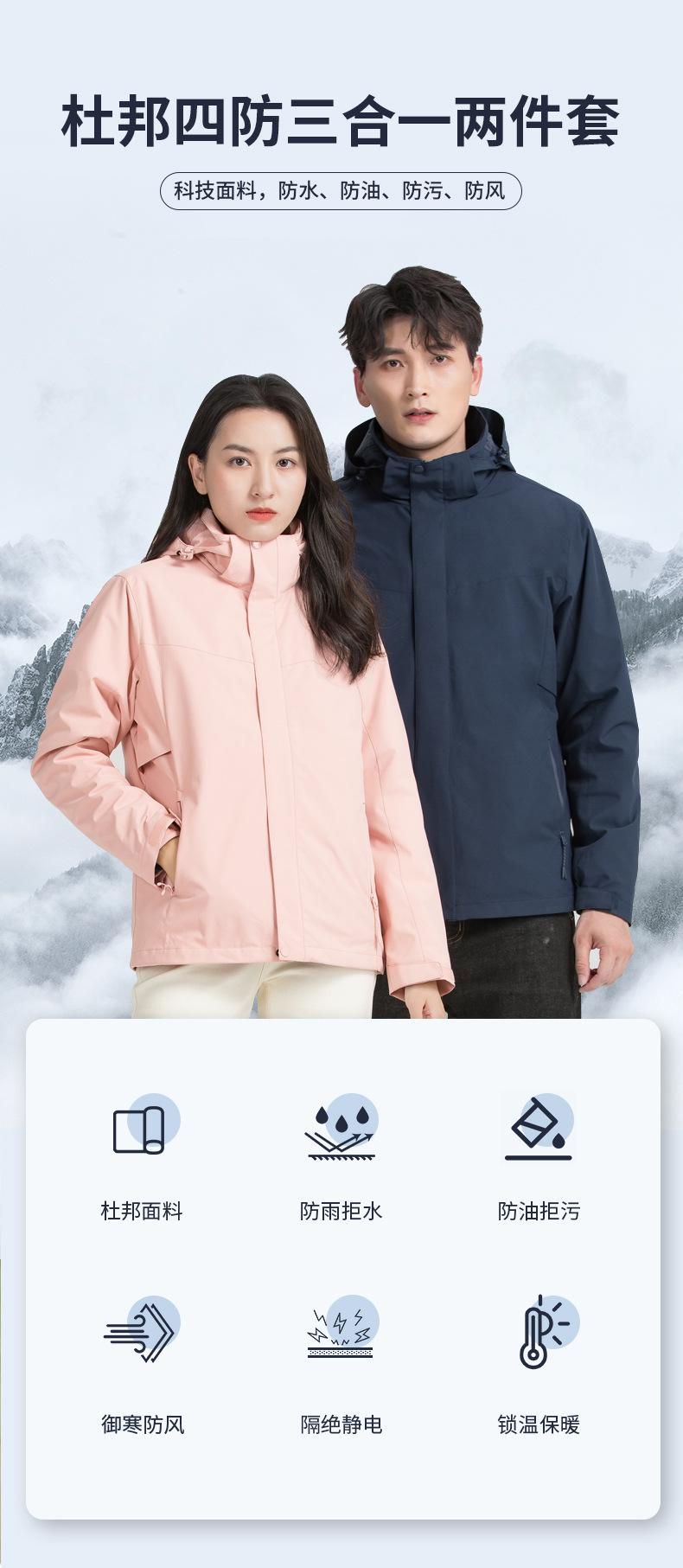 Jaqueta Três-Em-Um com Forro Removível de Lã, À Prova de Vento e Respirável, Conjunto de Duas Peças Impermeável para Trabalho em Grupo Masculino e Feminino de Outono e Inverno