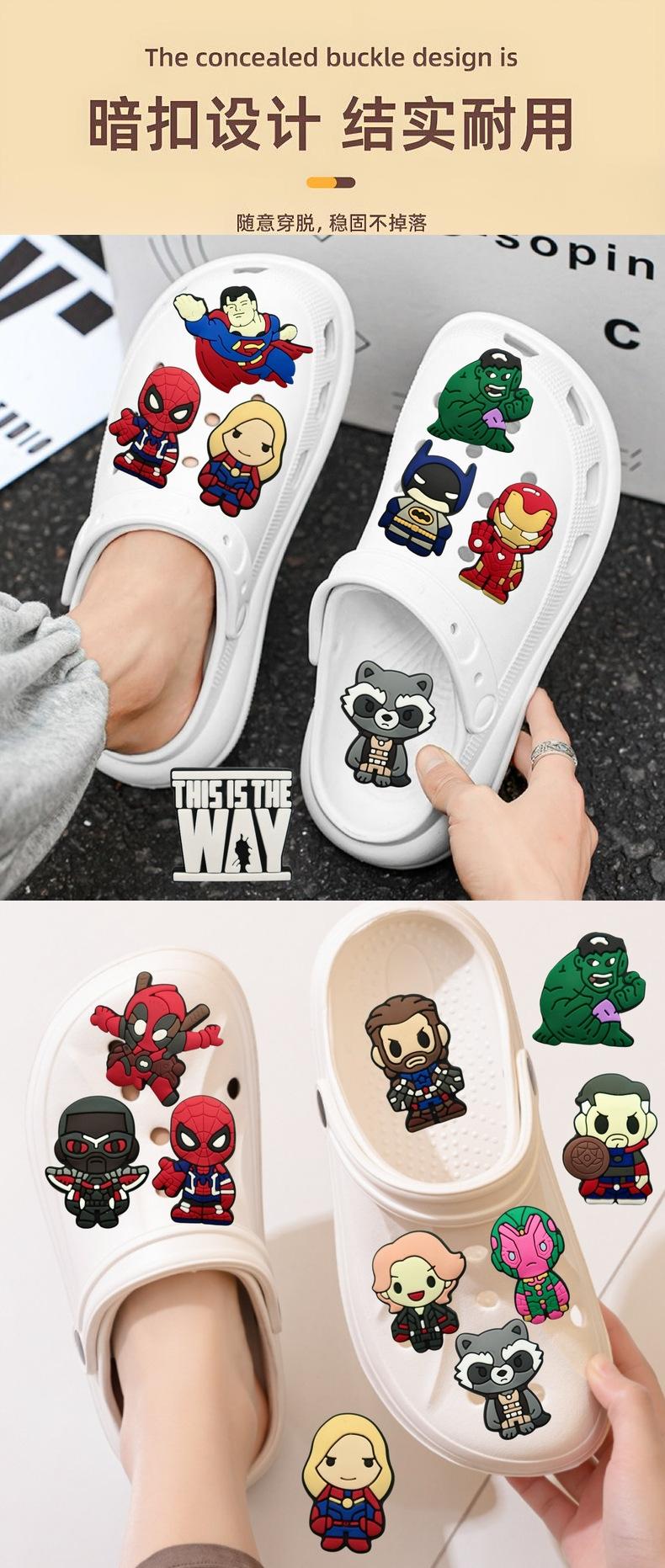Pingentes para Crocs Série Marvel Pvc Borracha Macia Acessórios Decorativos para Sapatos Atacado em Estoque