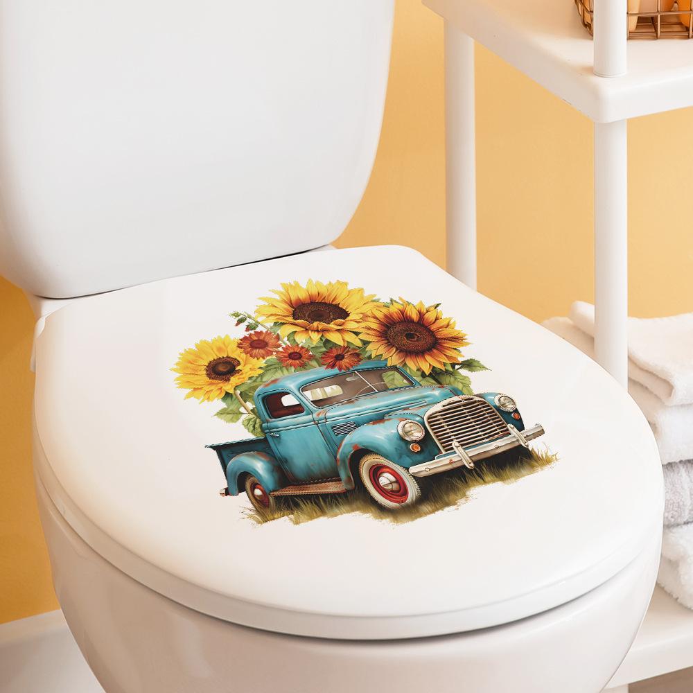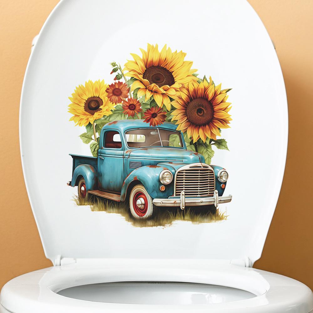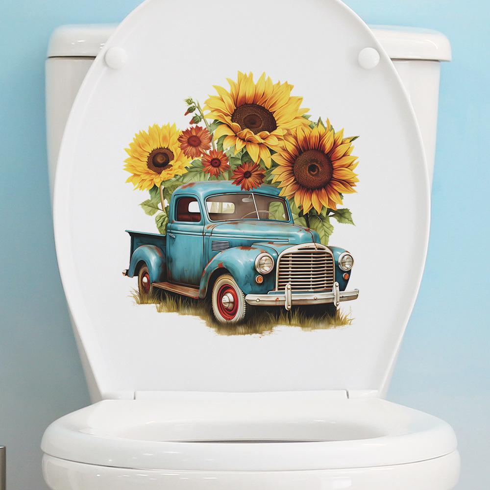 Novo fun-m68 personalizado carro girassol banheiro vaso sanitário adesivos de decoração de casa adesivos de parede