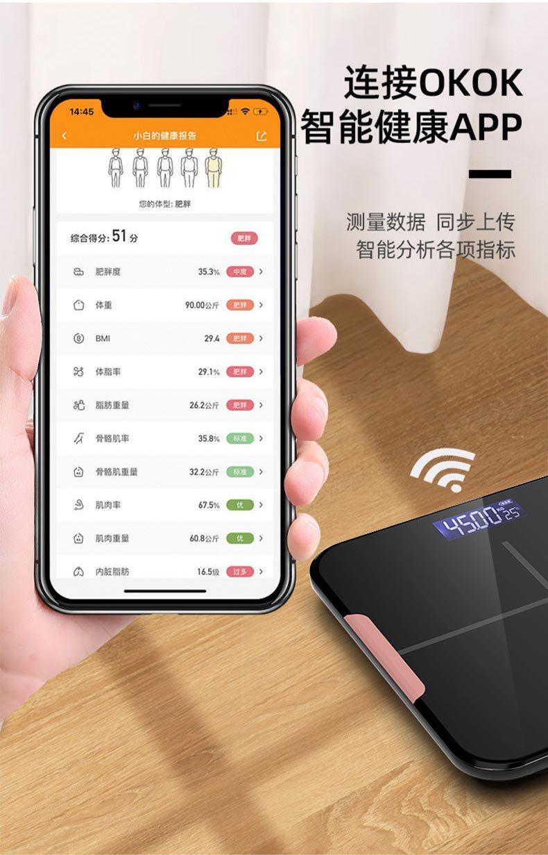 Uma geração de balança eletrônica de medição de gordura de carregamento de cabelo universal Bluetooth smart home simples carregamento de gordura corporal balança