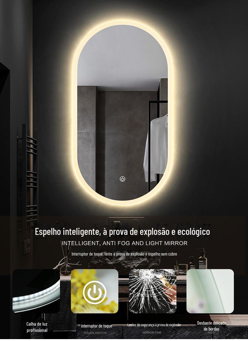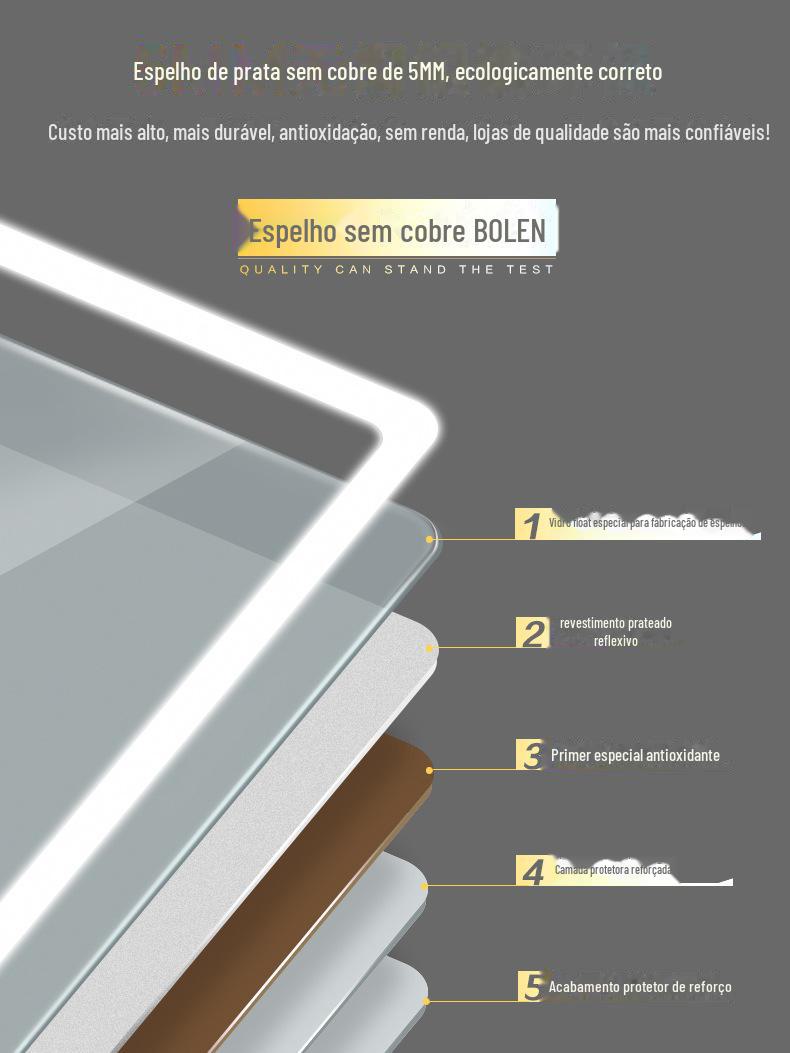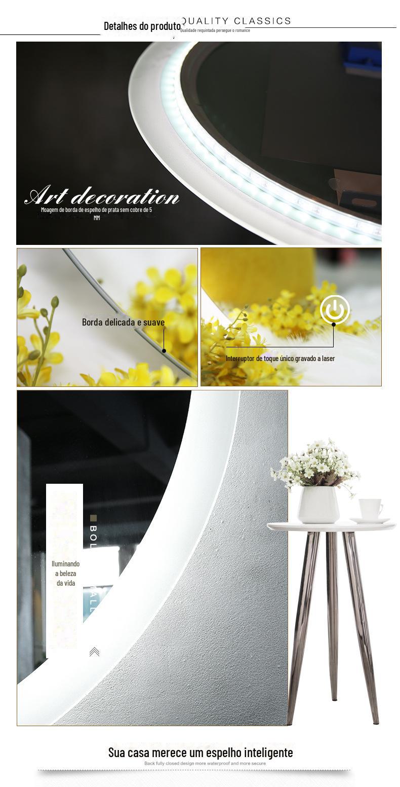 Espelho Inteligente de Banheiro Bolen Lavatório Banheiro com Luz Espelho de Maquiagem LED Pendurado na Parede Espelho Decorativo Atacado Luz de Fundo