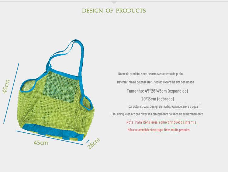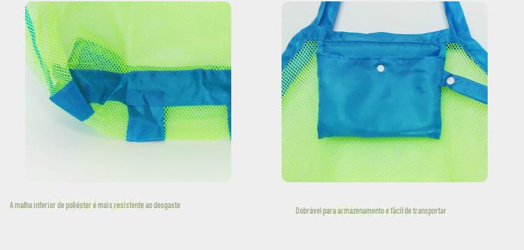 Bolsa de praia infantil dobrável personalizada, bolsa de armazenamento de brinquedos, ferramenta de escavação de areia, bolsa de malha para armazenamento de artigos diversos, bolsa de malha grande