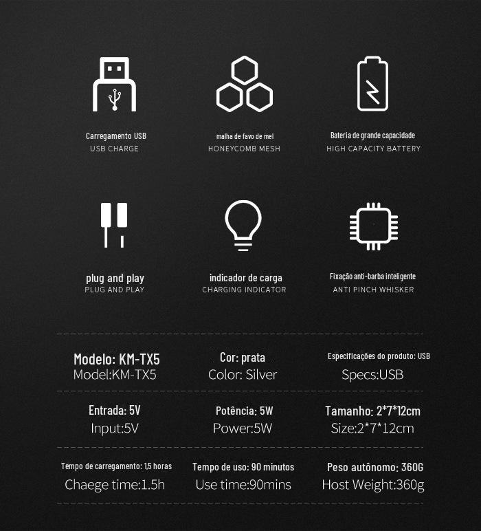 KEMEI KM-TX5 Barbeador elétrico alternativo USB recarregável navalha flutuante faca de barba líquida