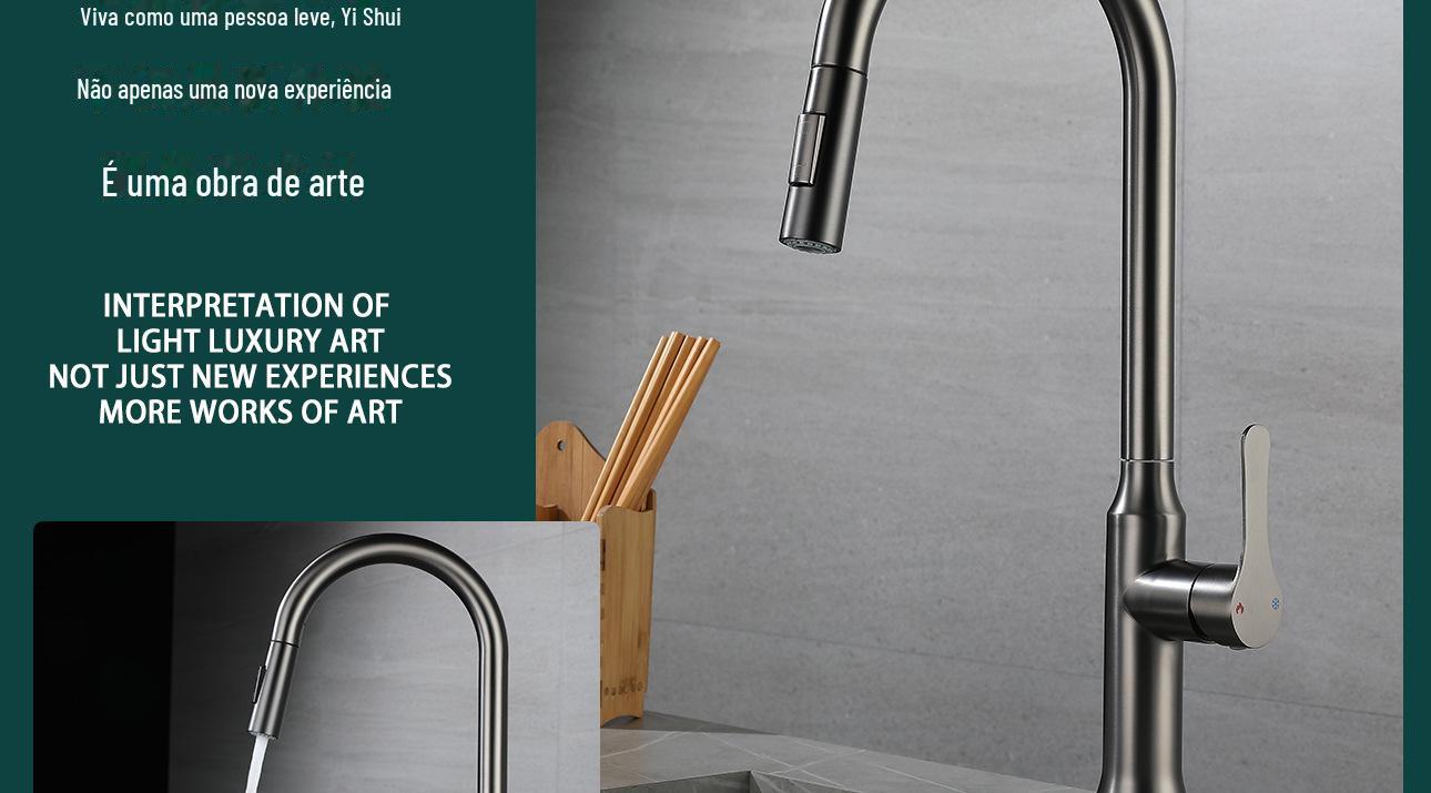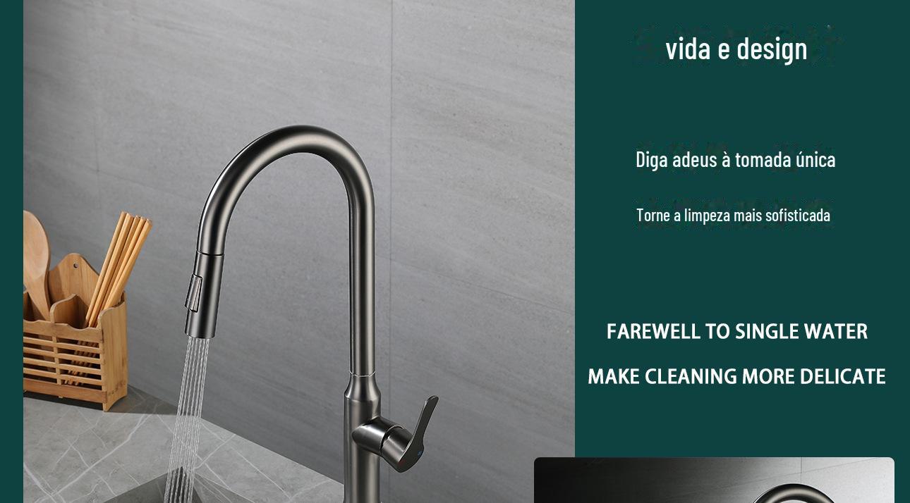 Cinza Chumbo Aço Inoxidável 304 Multifuncional Retrátil Pia à Prova de Salpicos Quente e Fria Torneira de Cozinha