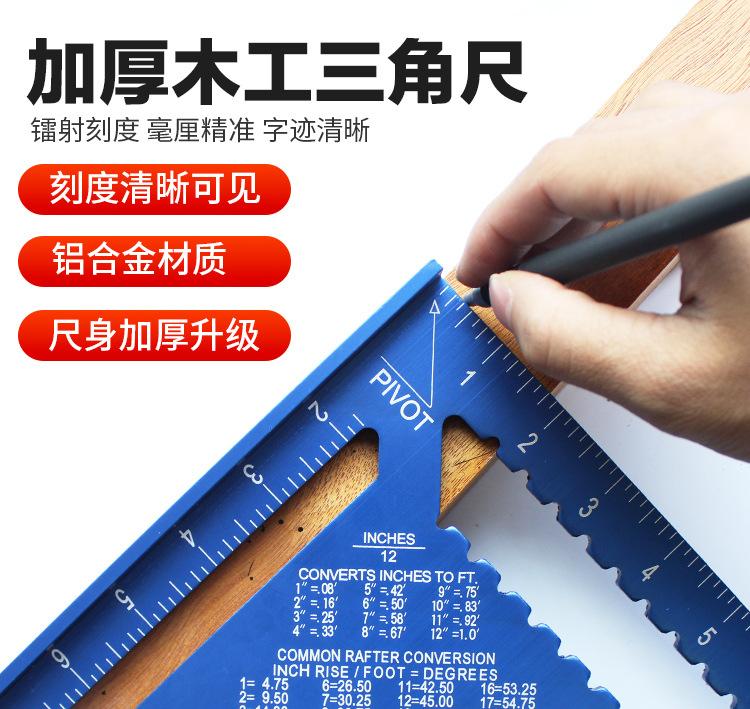 Régua triangular de liga de alumínio de alta precisão triângulo multifuncional grosso marcenaria quadrado 45 graus espessado régua de aço inoxidável