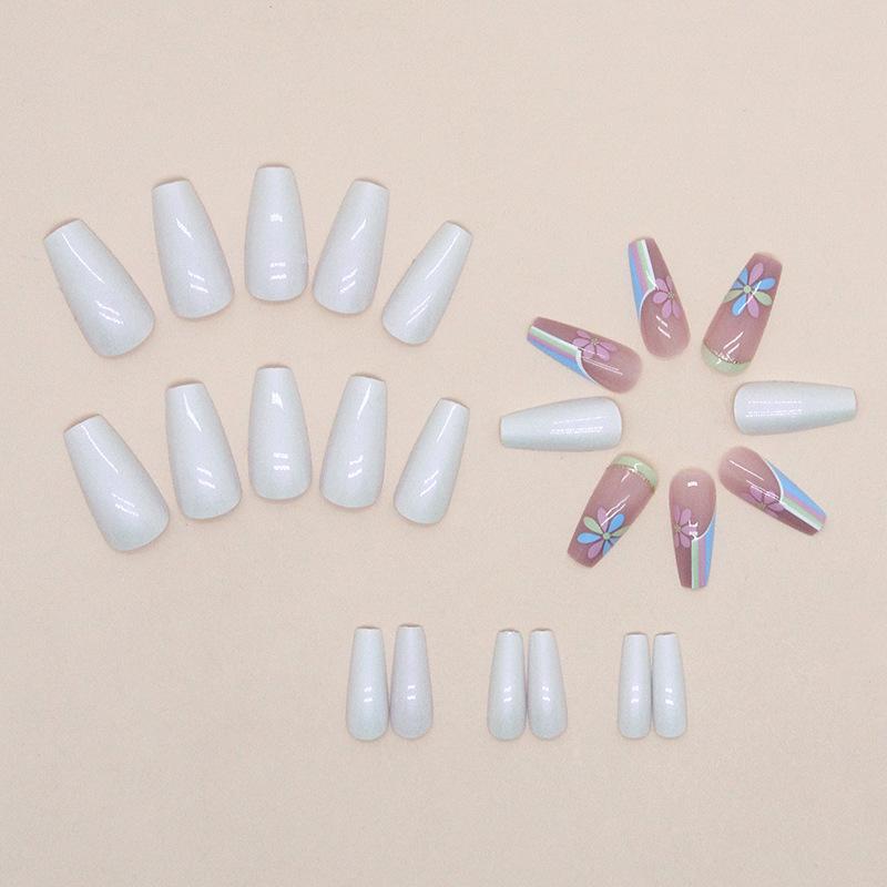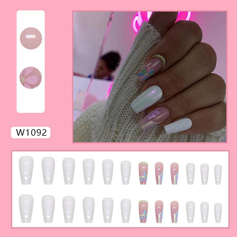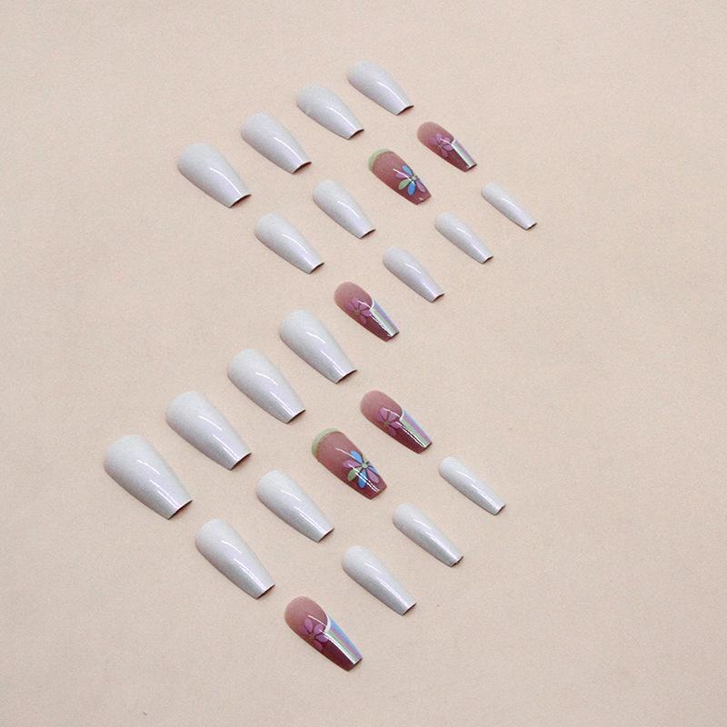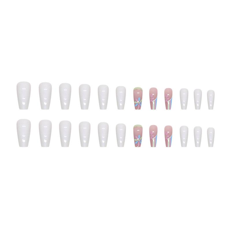 Média e Longa Linha Armadura de Balé Francês Verão Fresco Flor Nail Art Flash Europeu e Americano ins Estilo Unha Falsa Acabado Mix
