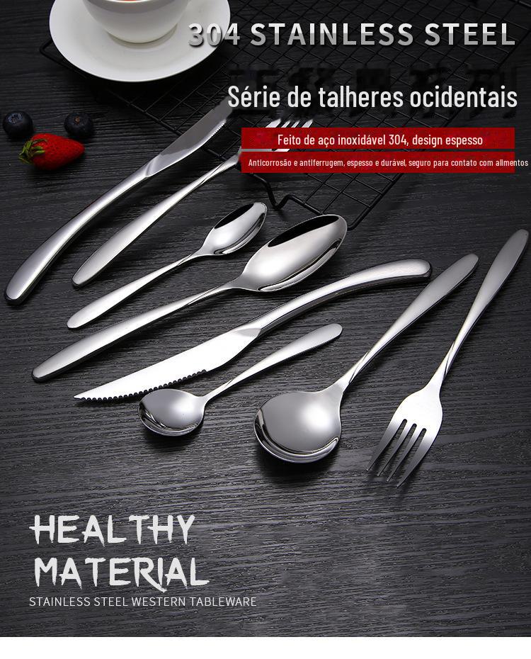Faca de bife personalizada de aço inoxidável 304, garfo, colher, cabo espesso, colher de mesa de restaurante de hotel, colher de café