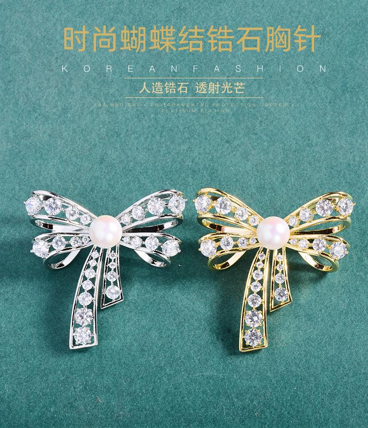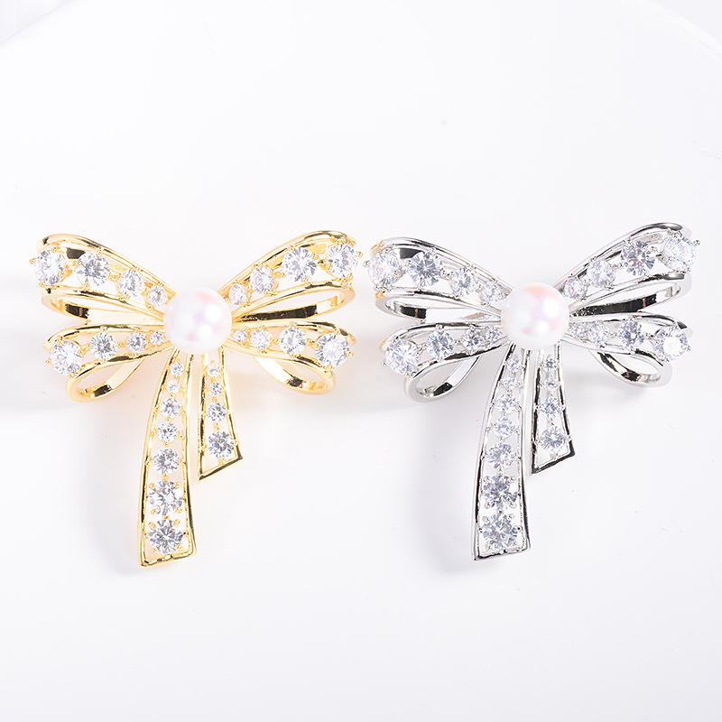 Estilo coreano elegante broche de laço temperamento requintado micro incrustado de zircão frisando corsage high-end terno alfinete
