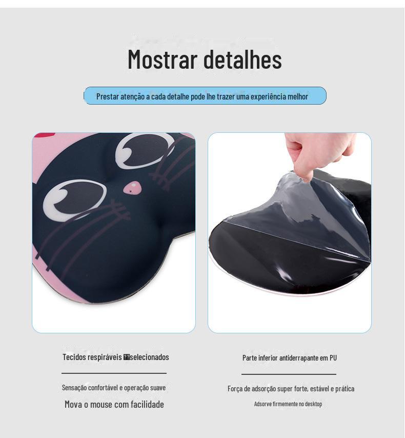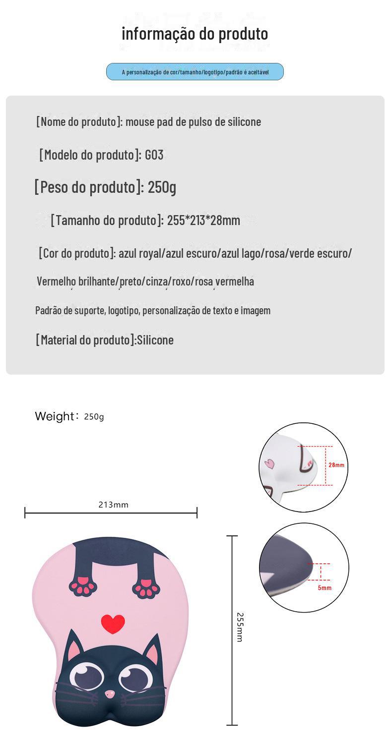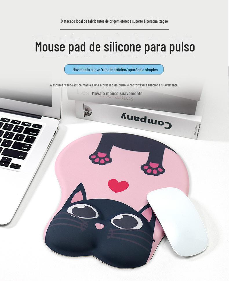 Mouse Pad de Pulso Fofo de Gato Transfronteiriço Desenho Animado Protetor de Pulso Apoio de Mão para Menina Almofada de Silicone para Computador Escritório