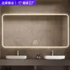 Em Estoque, Despacho Imediato, Espelho Quadrado de Luxo Leve Nórdico, Espelho de Banheiro LED Inteligente com Toque, Espelho de Maquiagem de Parede com Função Desembaçadora