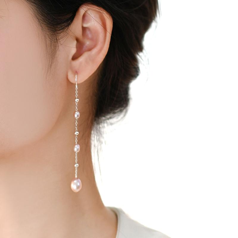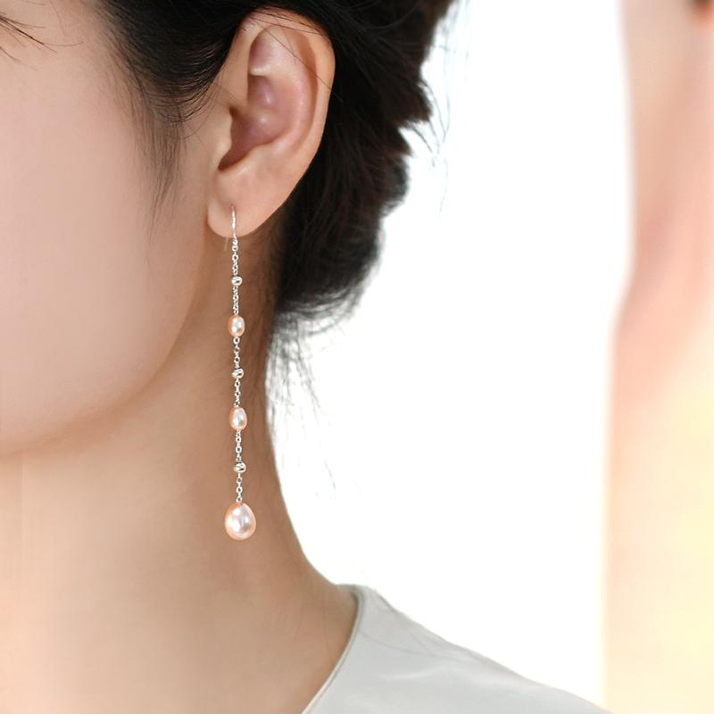 Compre Estilo coreano elegante pérola de água doce tassel brincos longos rosa roxo brincos de pérola temperamento de fada brincos de luxo leve para as mulheres no atacado no Joom.pro