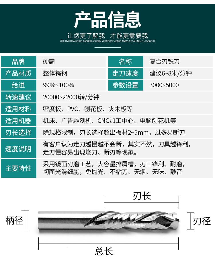 É adequado usar carboneto de tungstênio importado. Para cortar placas de densidade. Contraplacado, folheado, dupla face, aglomerado, madeira dura, madeira maciça e outros materiais, corte suave sem lascar ou rebentar. As especificações de tamanho são 3,175 mm, 4 mm, 6 mm, 8 mm, 10 mm, 12 mm, disponíveis. Fabricante de fresas para marcenaria. Fresa especial para marcenaria. Fresa imperial. Fornecimento exclusivo de mercadorias transfronteiriças.