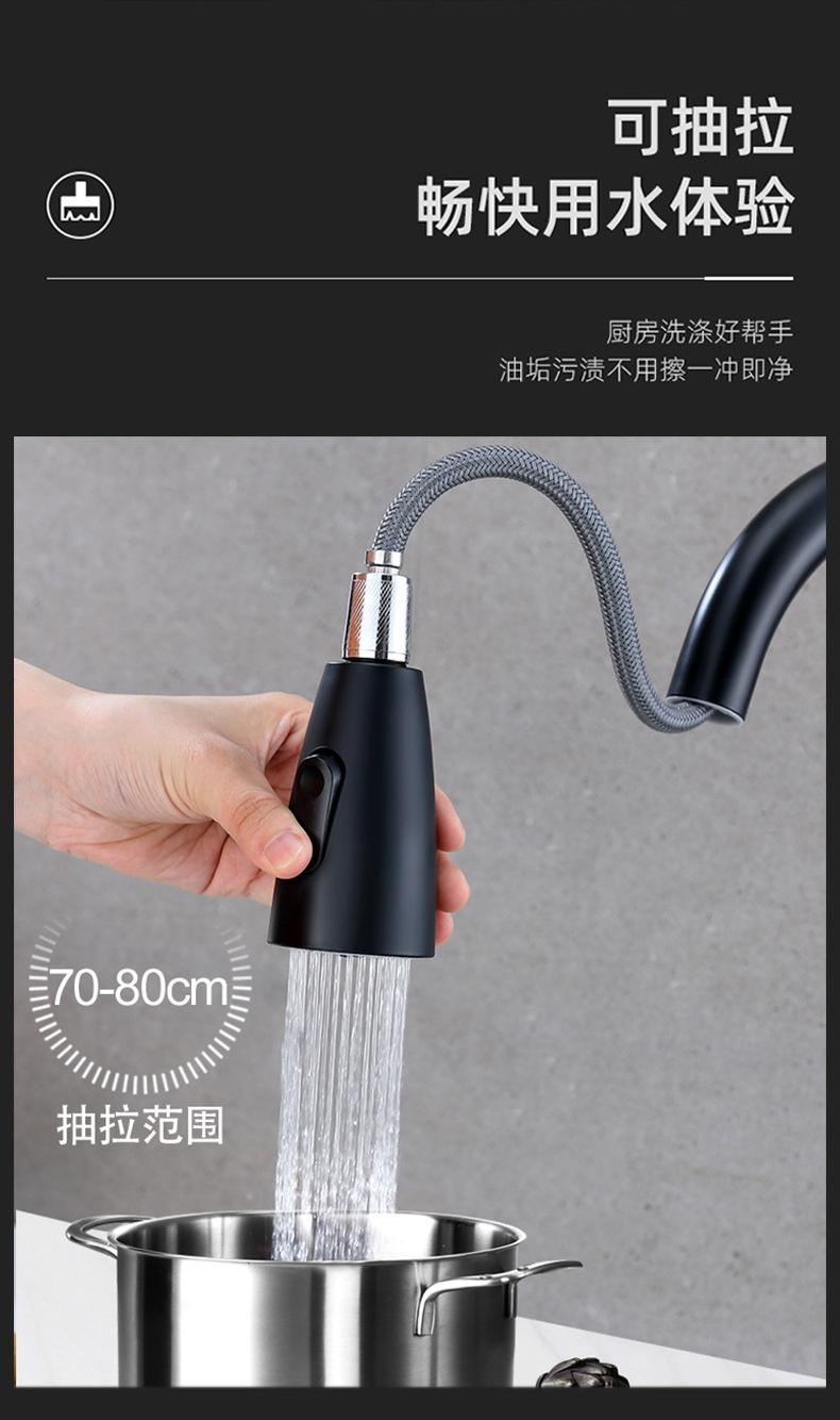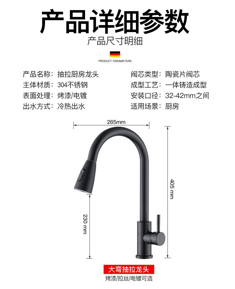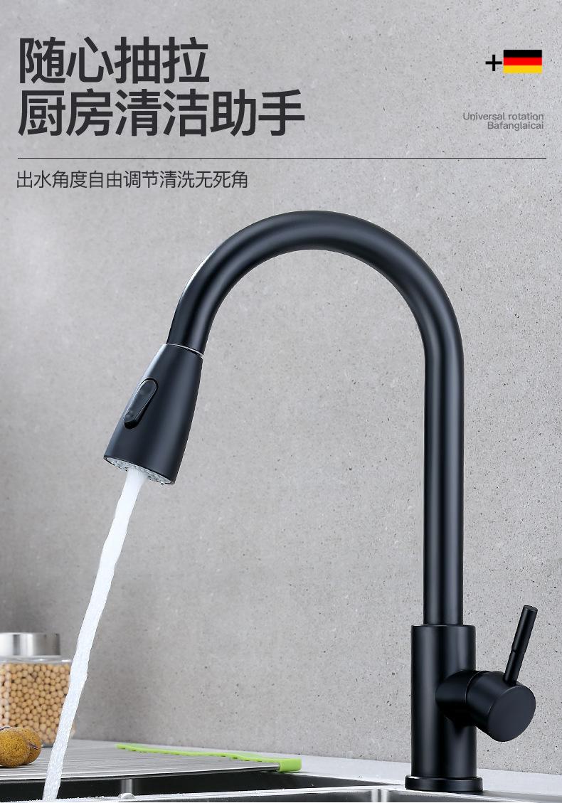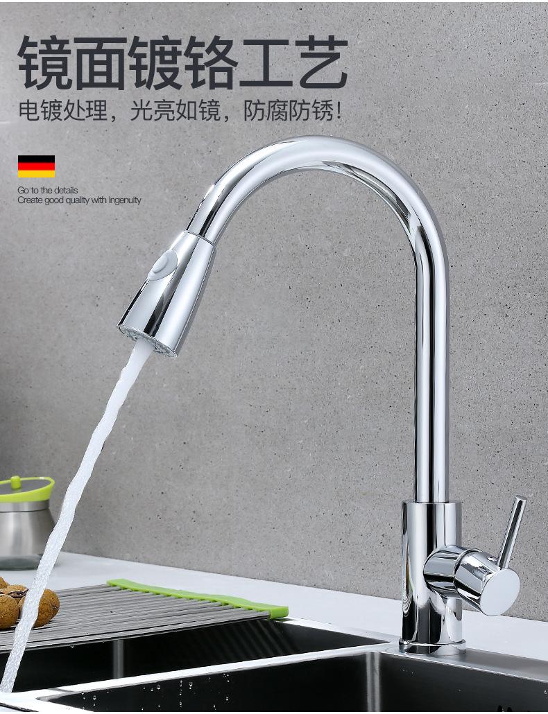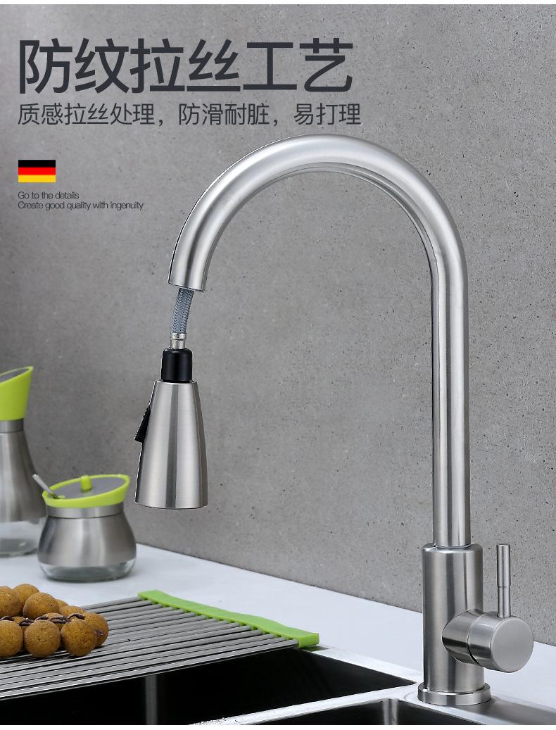 Torneira de cozinha de aço inoxidável 304 transfronteiriça, à prova de respingos, para lavar vegetais, pia, torneira retrátil quente e fria