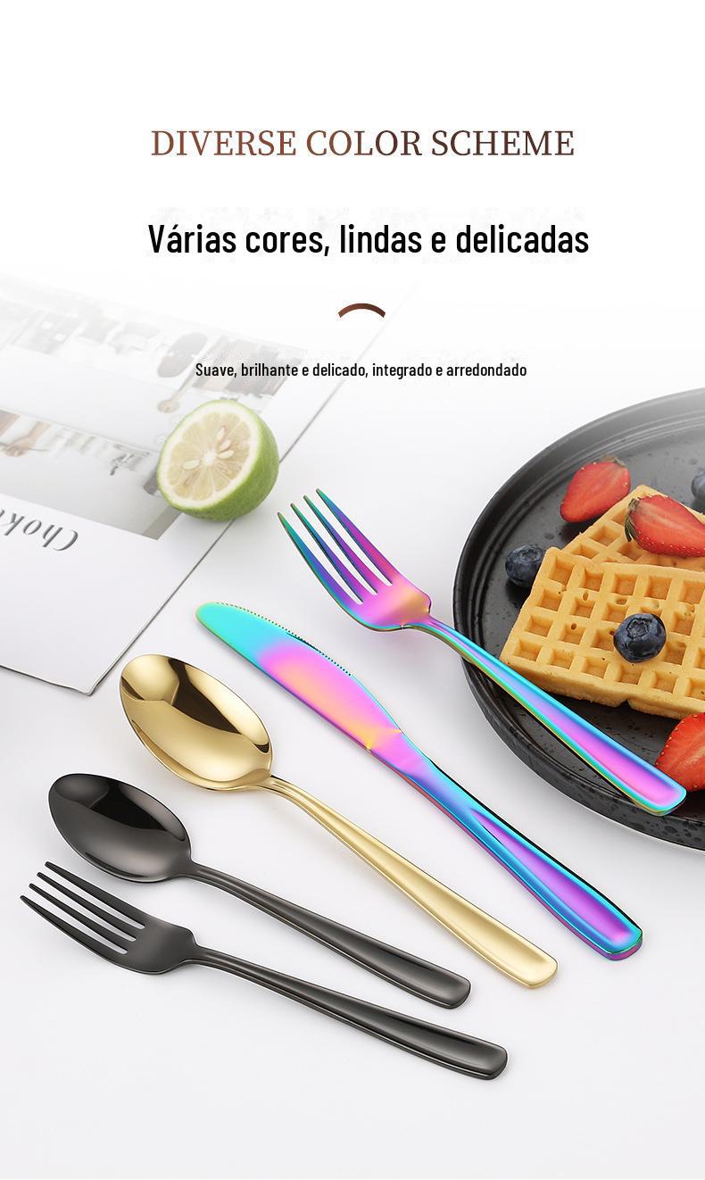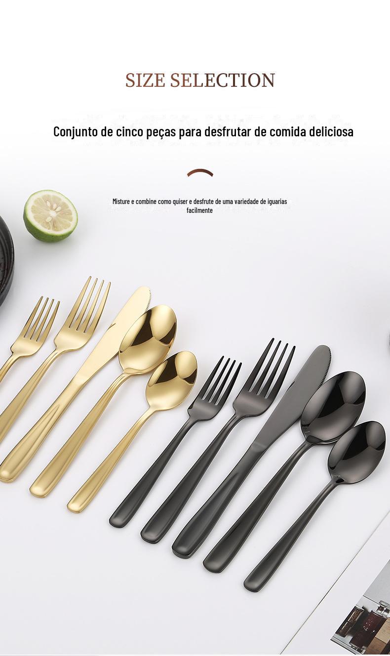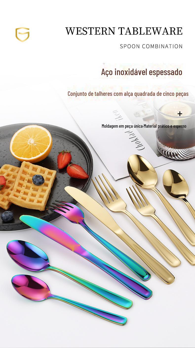 Faca de ranhura de punho quadrado, garfo e colher de cinco peças cross-border terno de louça de aço inoxidável Amazon Western steak faca e garfo