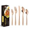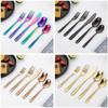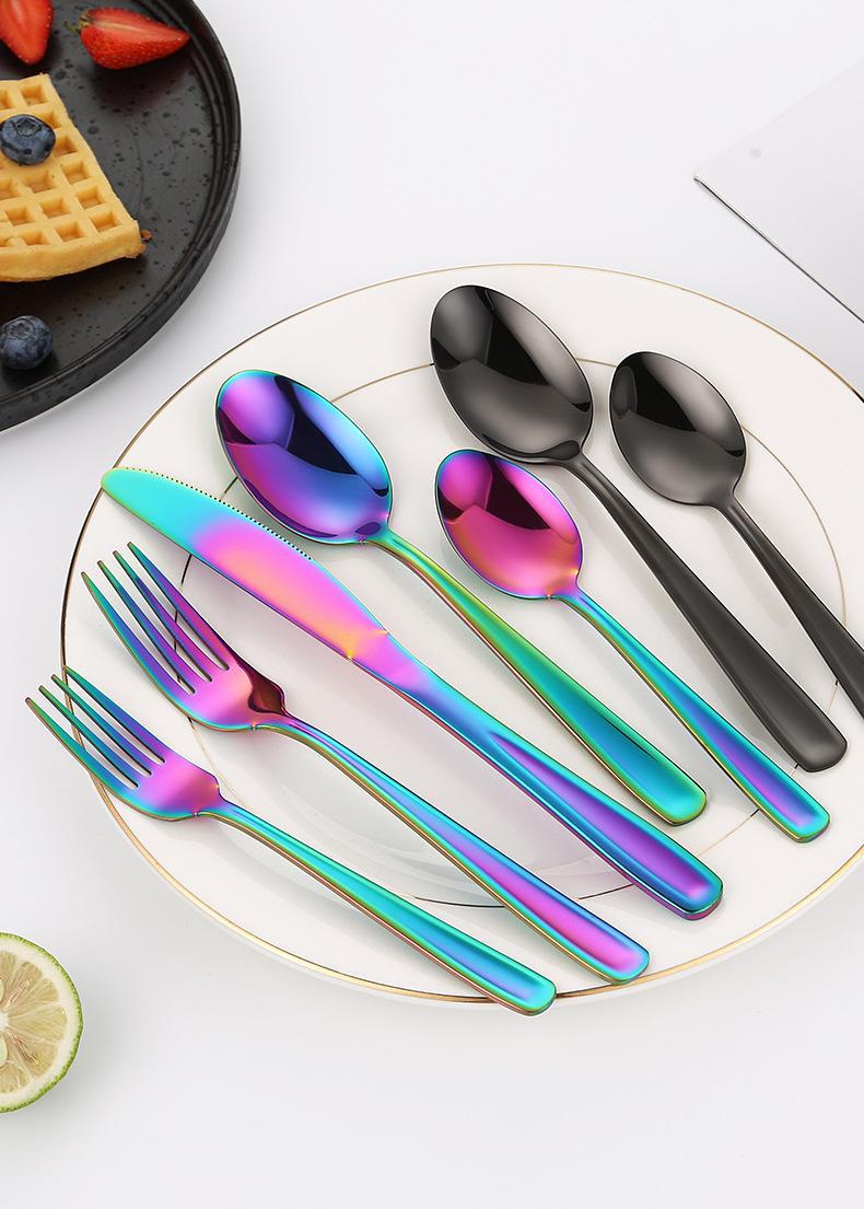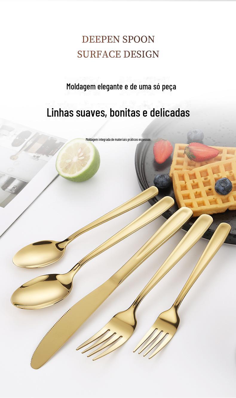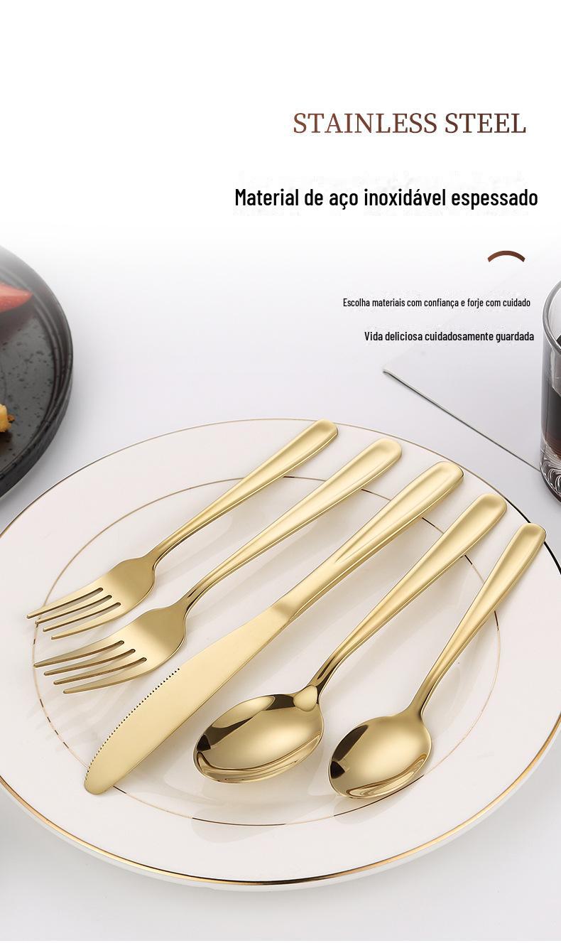 Faca de ranhura de punho quadrado, garfo e colher de cinco peças cross-border terno de louça de aço inoxidável Amazon Western steak faca e garfo