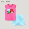 Novo conjunto de 2 peças de terno de manga curta para meninas, estilo europeu e americano, estampa de cavalo-marinho, desenho animado, top e shorts para crianças
