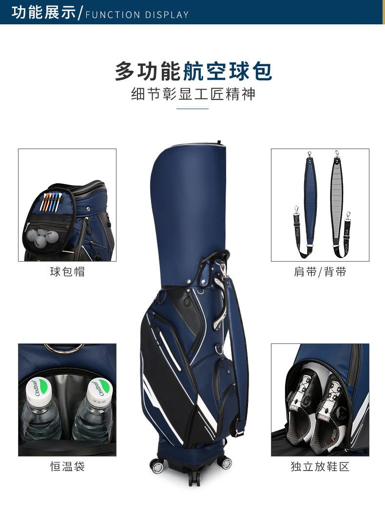 PGM fábrica vendas diretas universal quatro rodas saco de golfe para homens e mulheres telescópico saco plano push bag com tampa de bola dupla