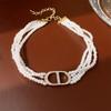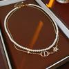Colar de pérolas banhado a ouro letras de zircão elegante all-match clavicle cadeia leve luxo colar de alta qualidade para as mulheres Venda por atacado