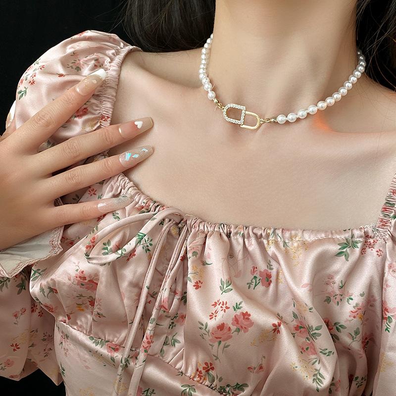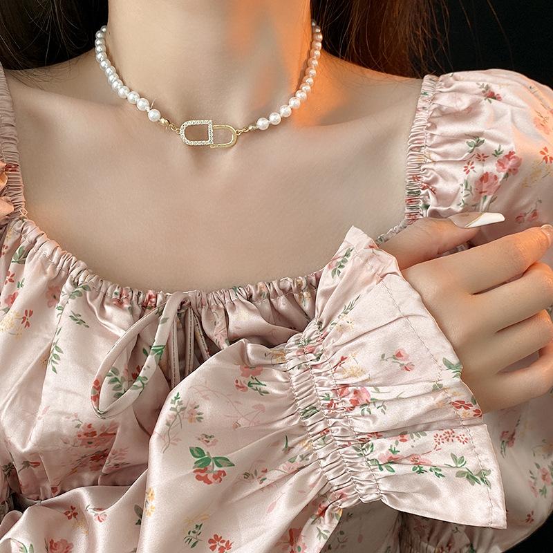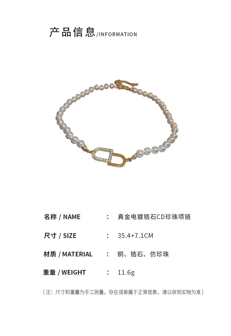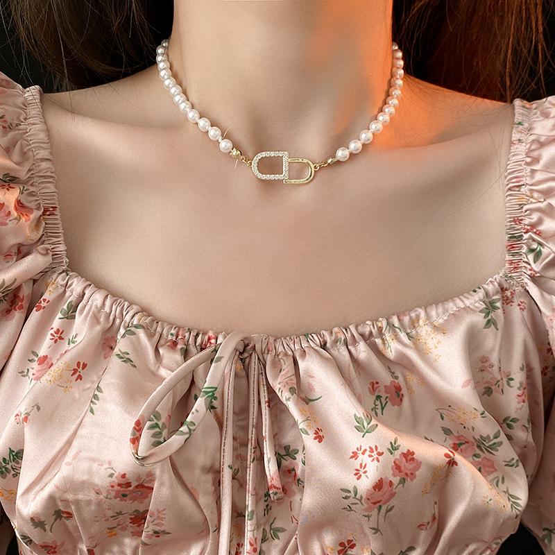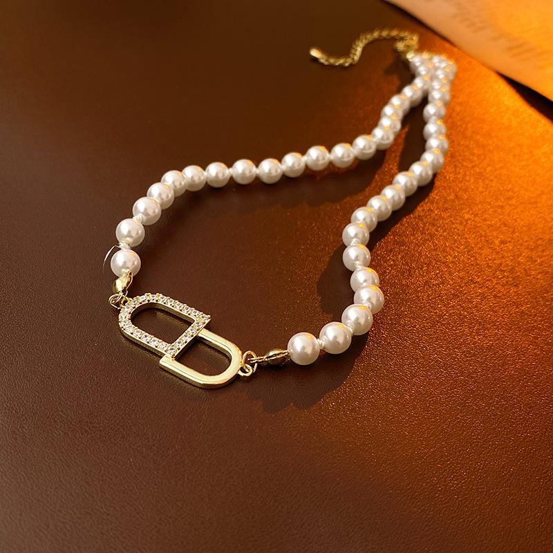 Compre Colar de pérolas banhado a ouro letras de zircão elegante all-match clavicle cadeia leve luxo colar de alta qualidade para as mulheres Venda por atacado no atacado no Joom.pro