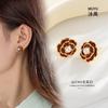 Brincos Cabeça de Cha de Montanha Retrô Francês, Brincos de Flor Modernos e Elegantes, Novos Brincos Simples e Versáteis de Gota de Óleo
