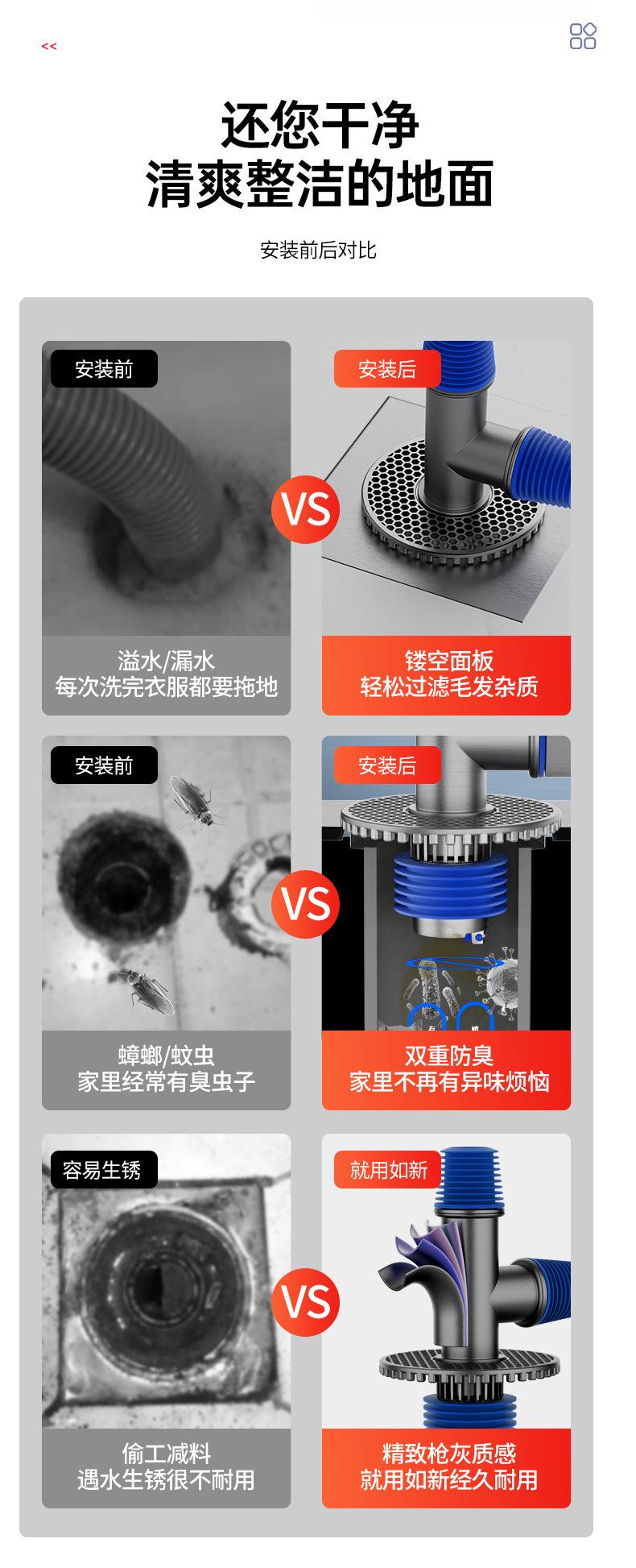 Floor drain single drainage (can be connected with a drain pipe), Floor drain three-way drainage (can be conne...