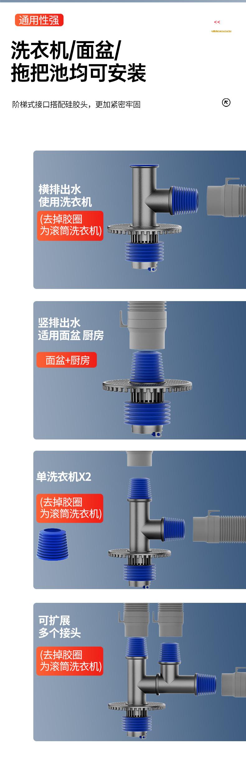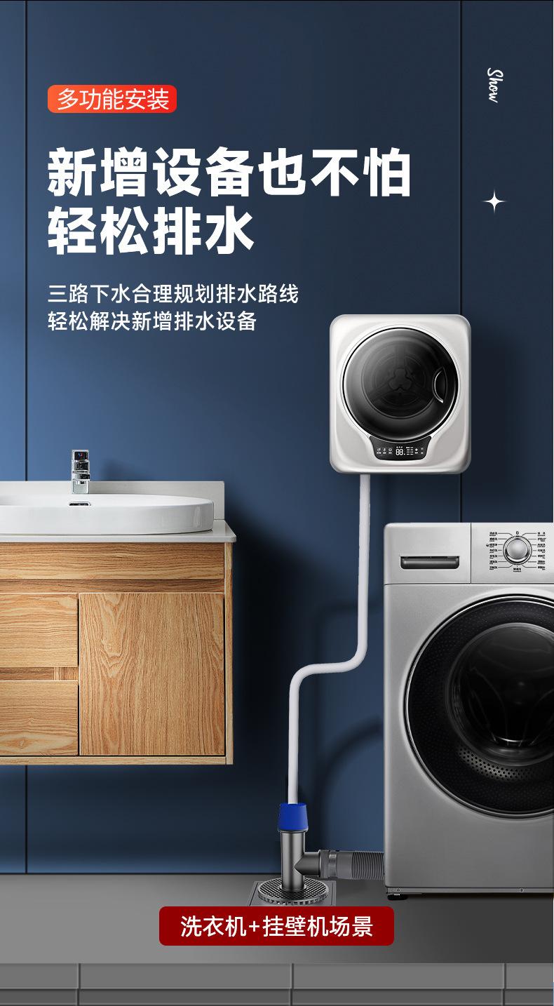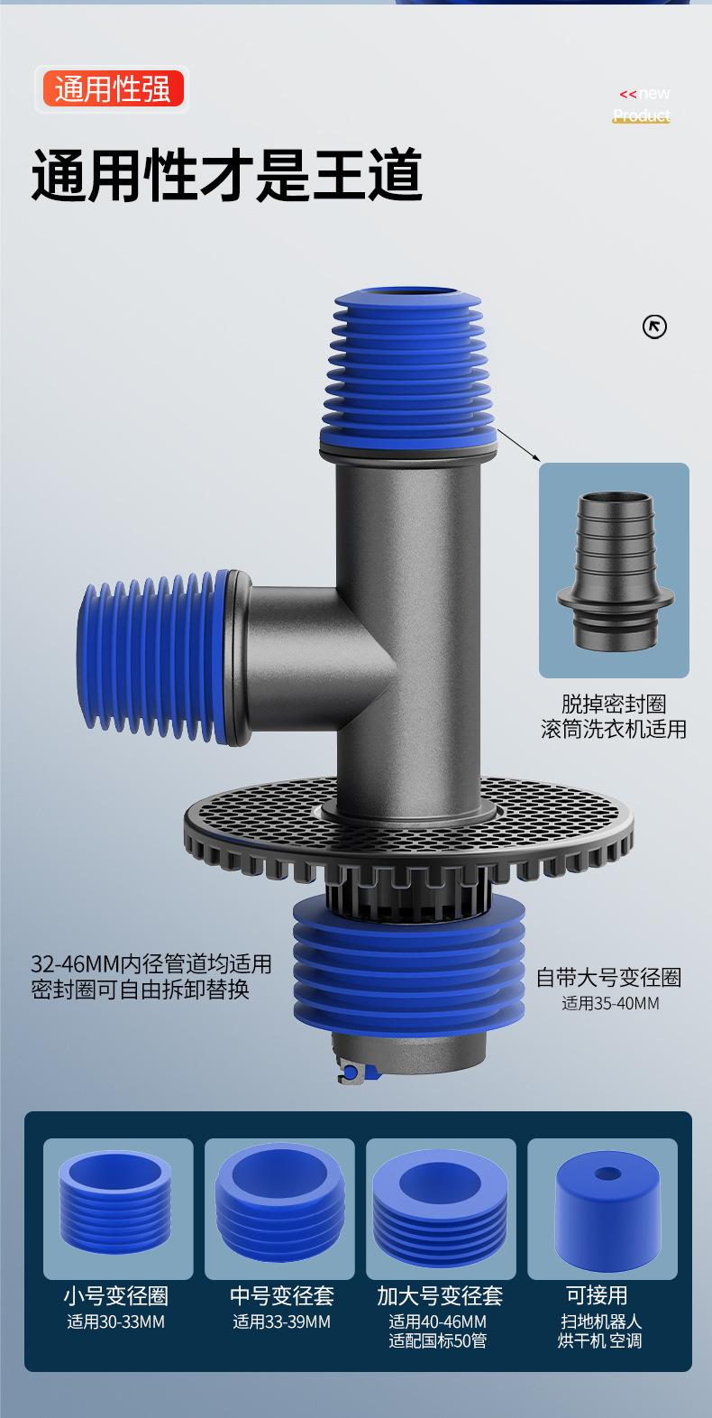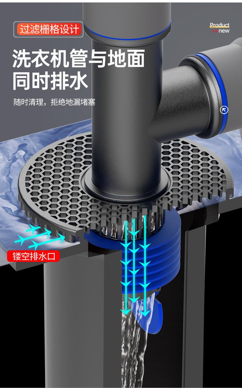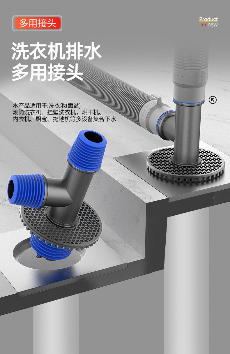 Varanda máquina de lavar roupa piso piso dreno junta especial de três vias tubo de drenagem dois em um plugue de desodorante de água anti-transbordamento