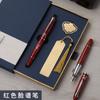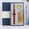 Ebony Zhiyin Pen + ploughing bookmark + Ruyi buckle-heaven and earth cover gift box, Red imitation porcelain p...