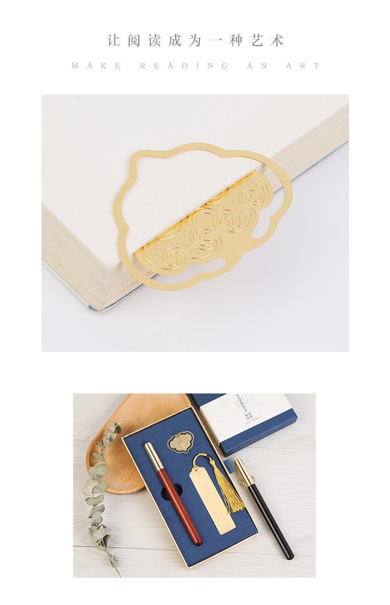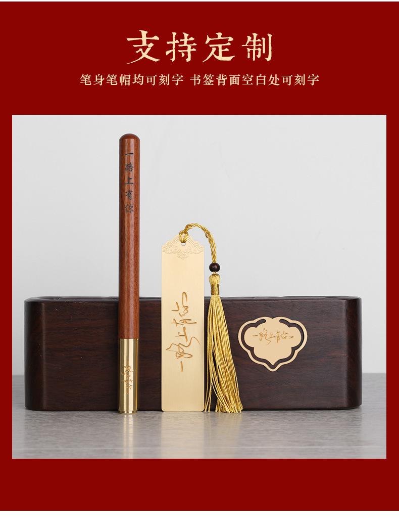 Rosewood Boya Pen + ploughing bookmark + Ruyi buckle-blue drawer box