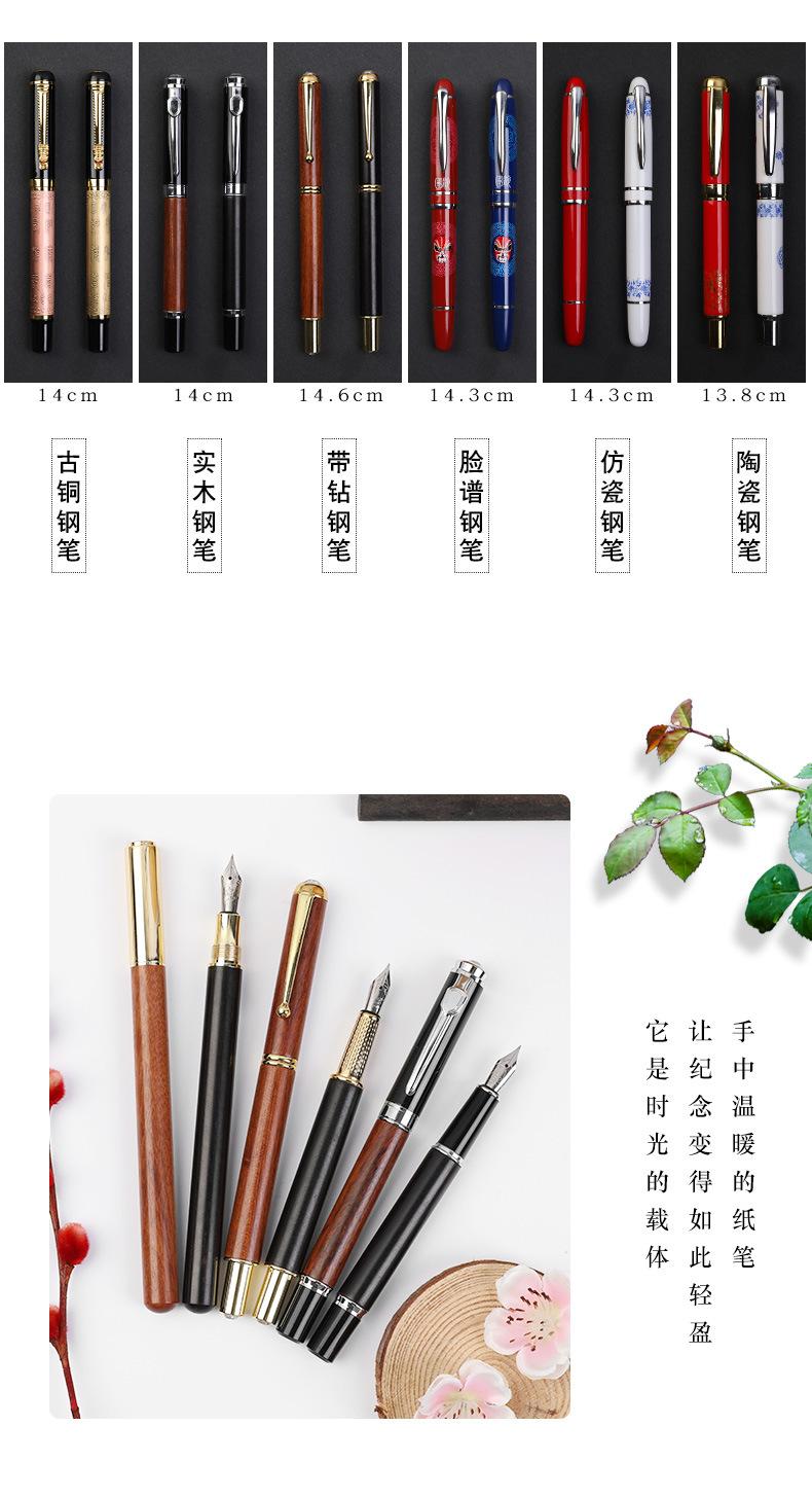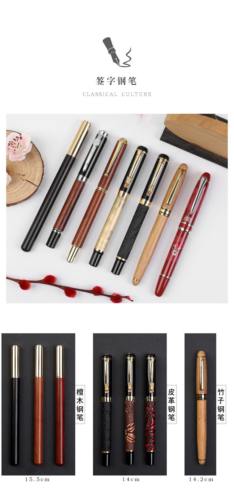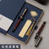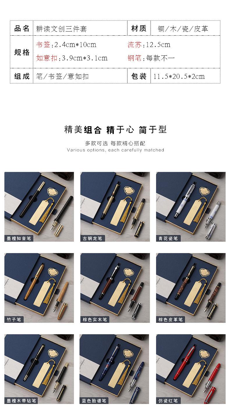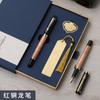 Red Copper Dragon Steel Pen + ploughing bookmark + Ruyi buckle-blue drawer box