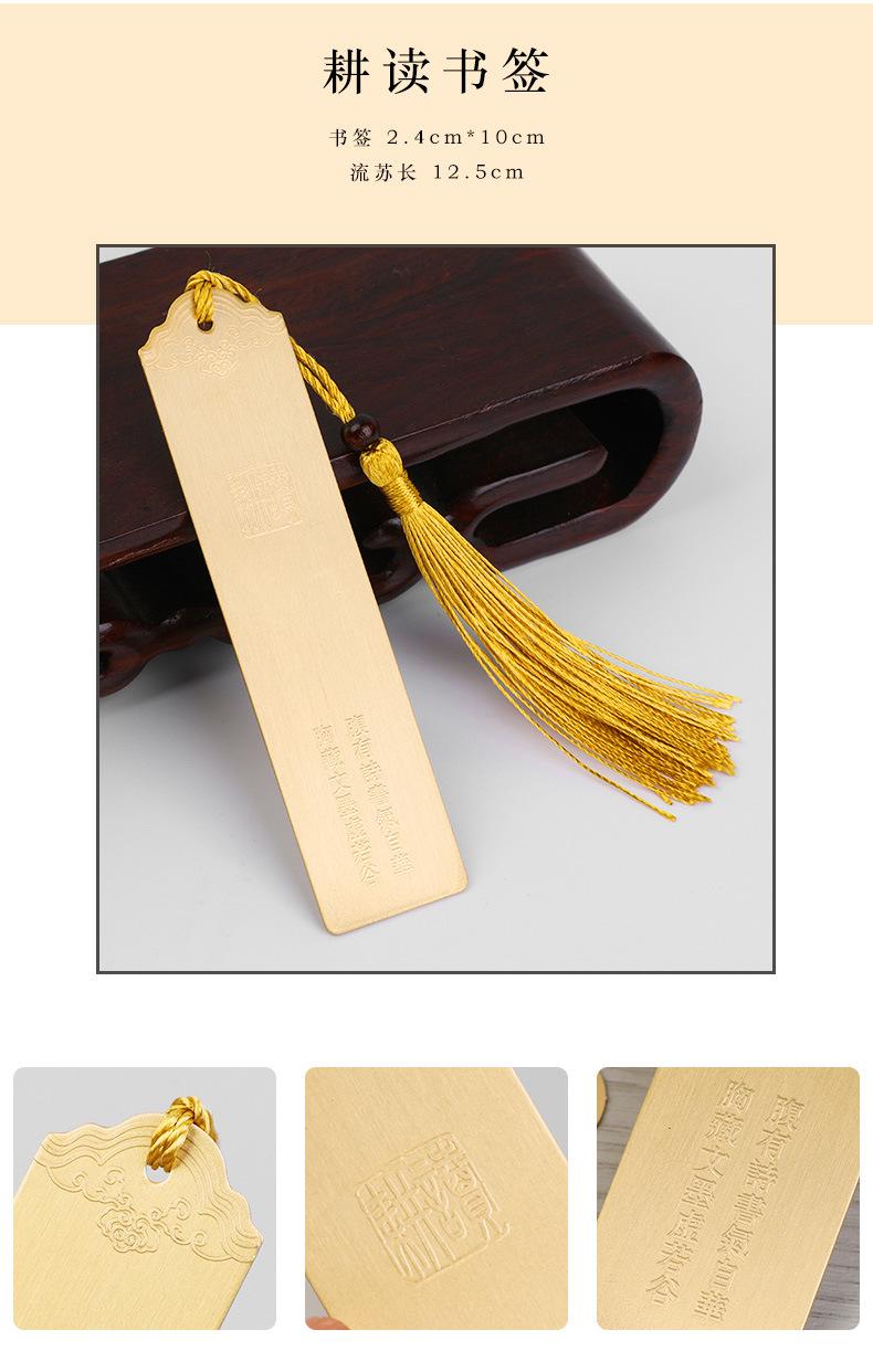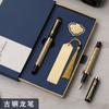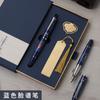 Bronze Dragon Steel Pen + ploughing bookmark + Ruyi buckle-blue drawer box