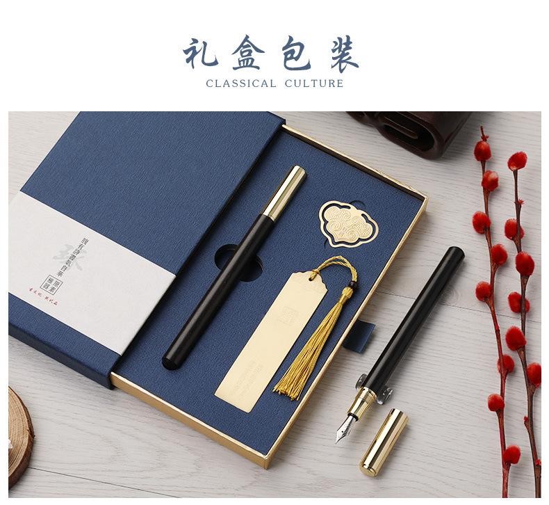Ebony Zhiyin Pen + ploughing bookmark + Ruyi buckle-blue drawer box