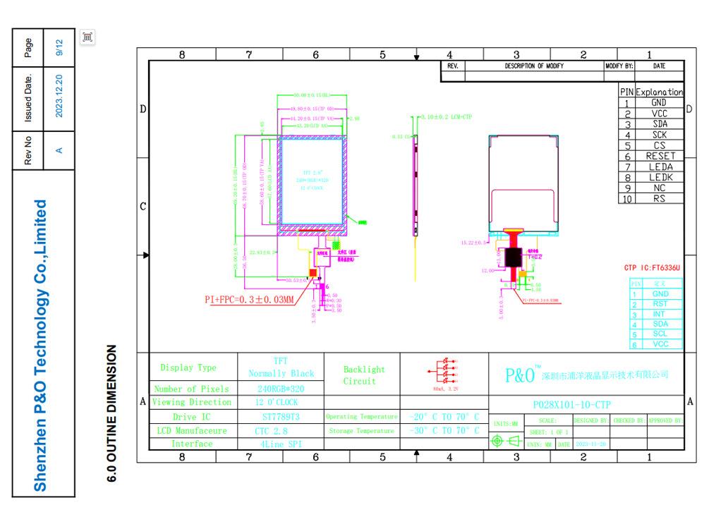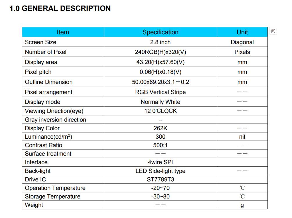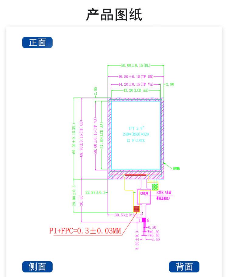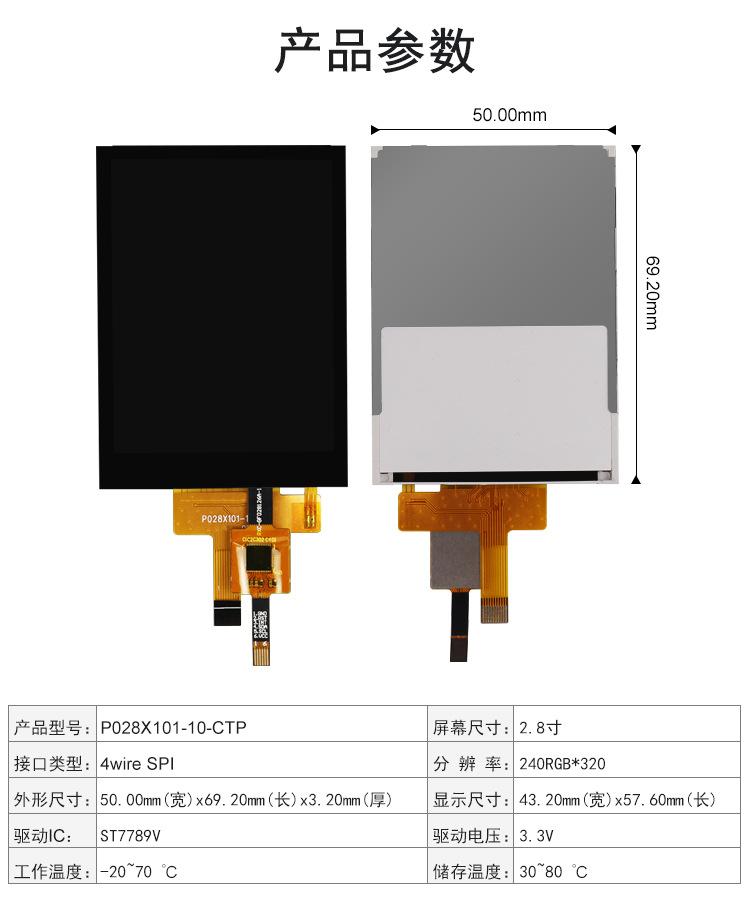 Tela TFT de 2,8 polegadas com porta serial SPI, tela colorida ST7789V, tela LCD sensível ao toque capacitiva 240*320