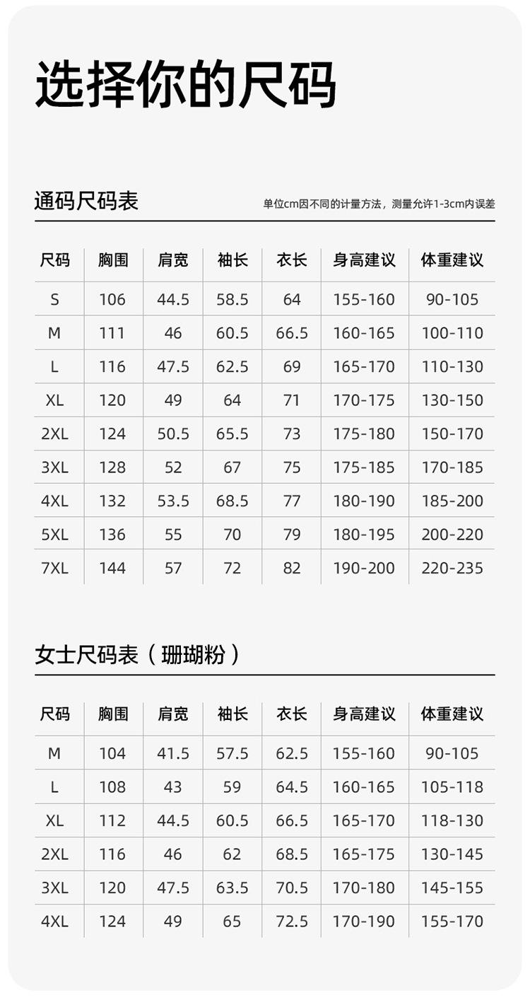 S, M, L, XL, 2XL, 3XL, 4XL, 5XL, 7xl [special body plus 20 yuan]