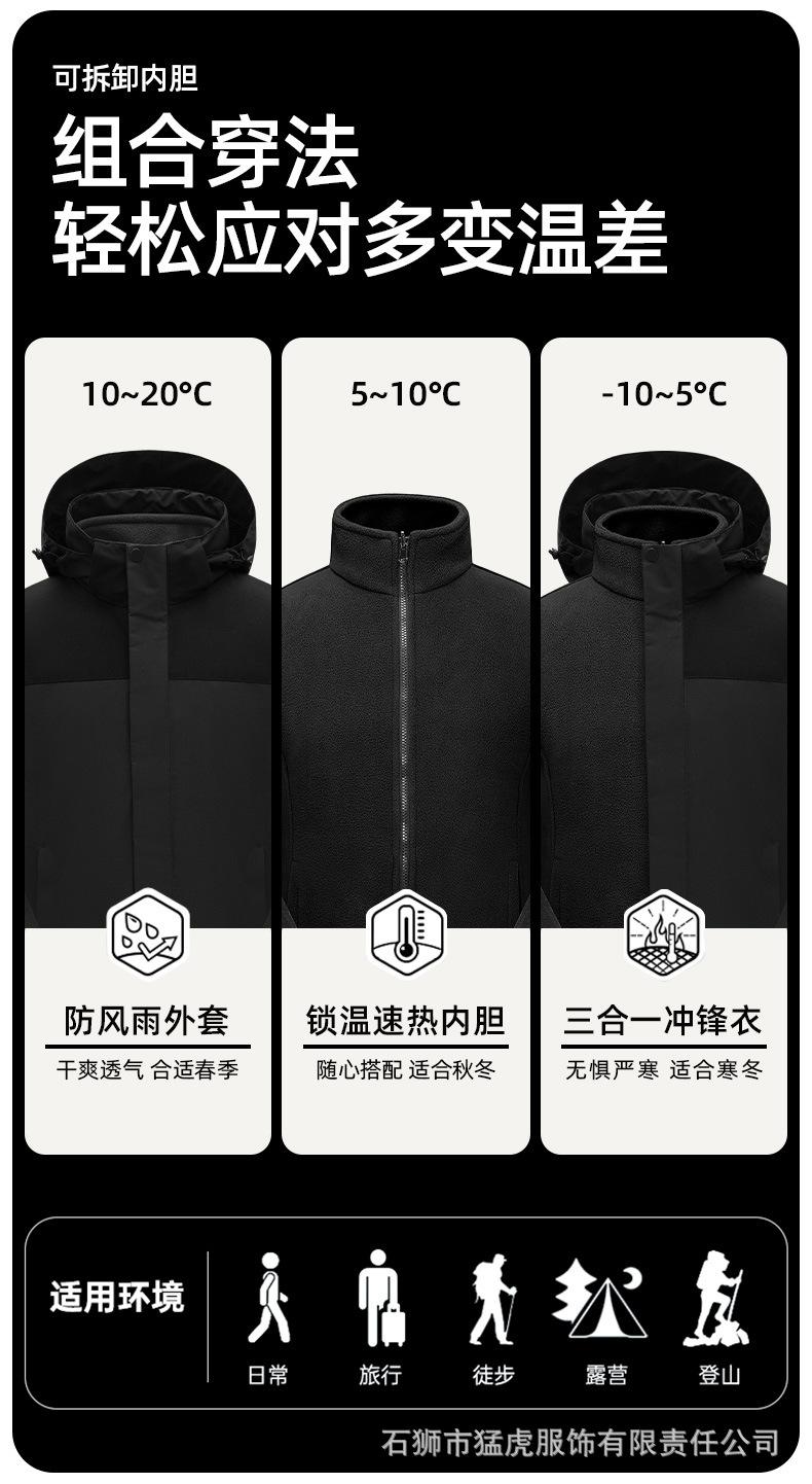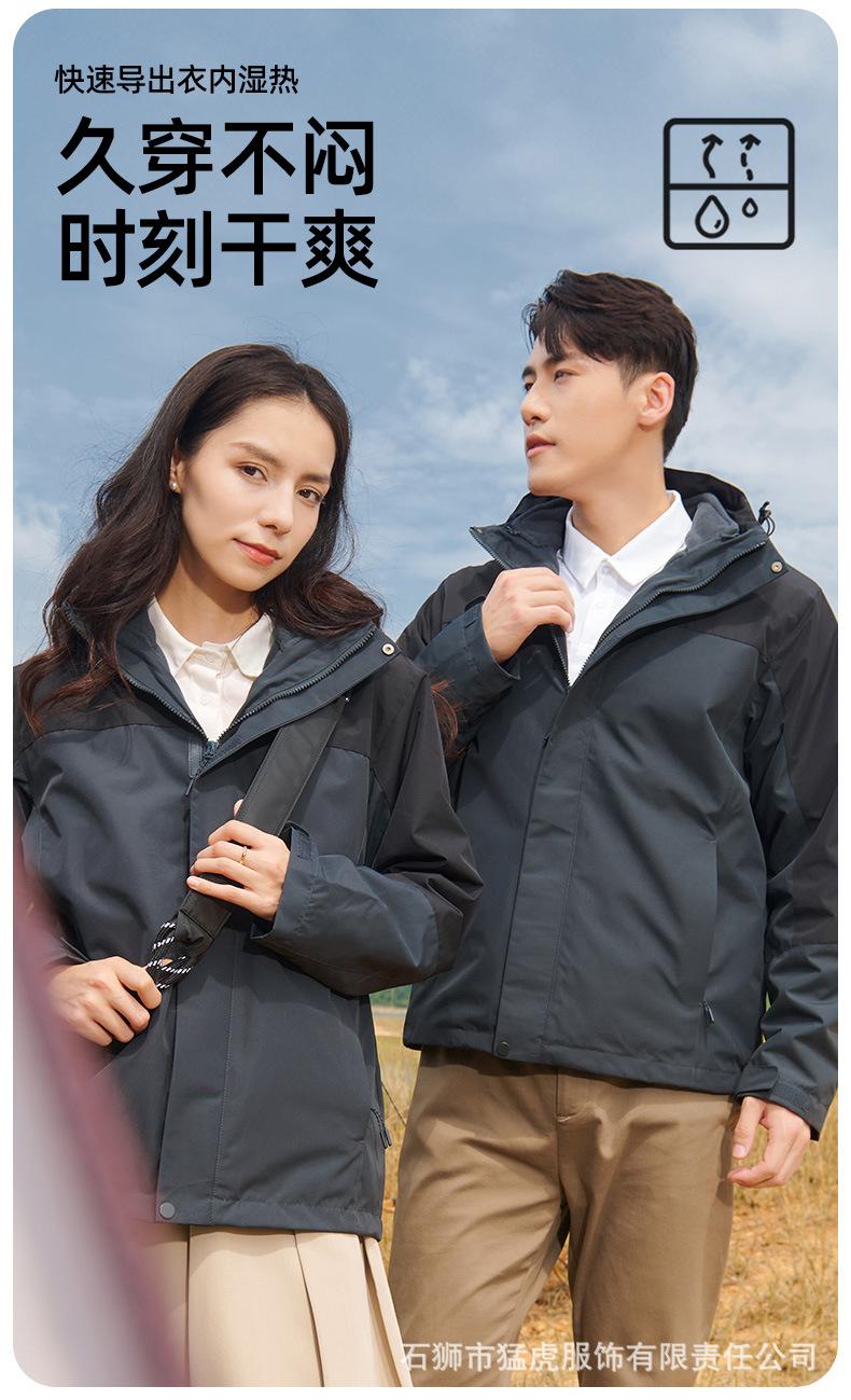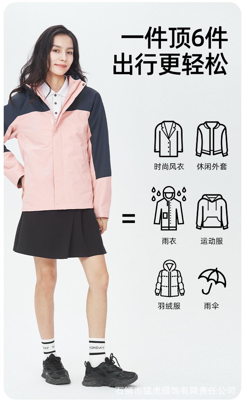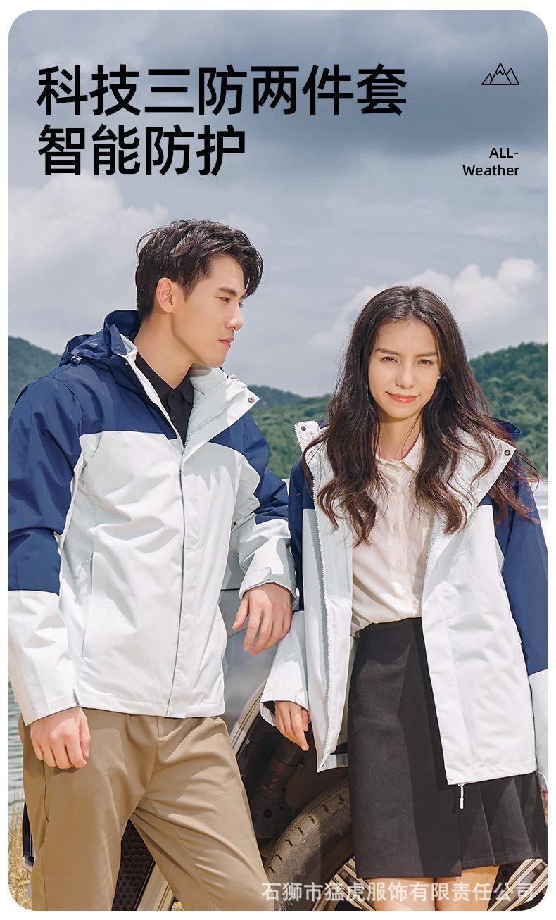 Terno de montanhismo à prova de vento e à prova d'água, três em um, masculino, à prova de óleo, quente, duas peças, casaco de viagem para mulheres