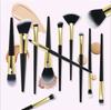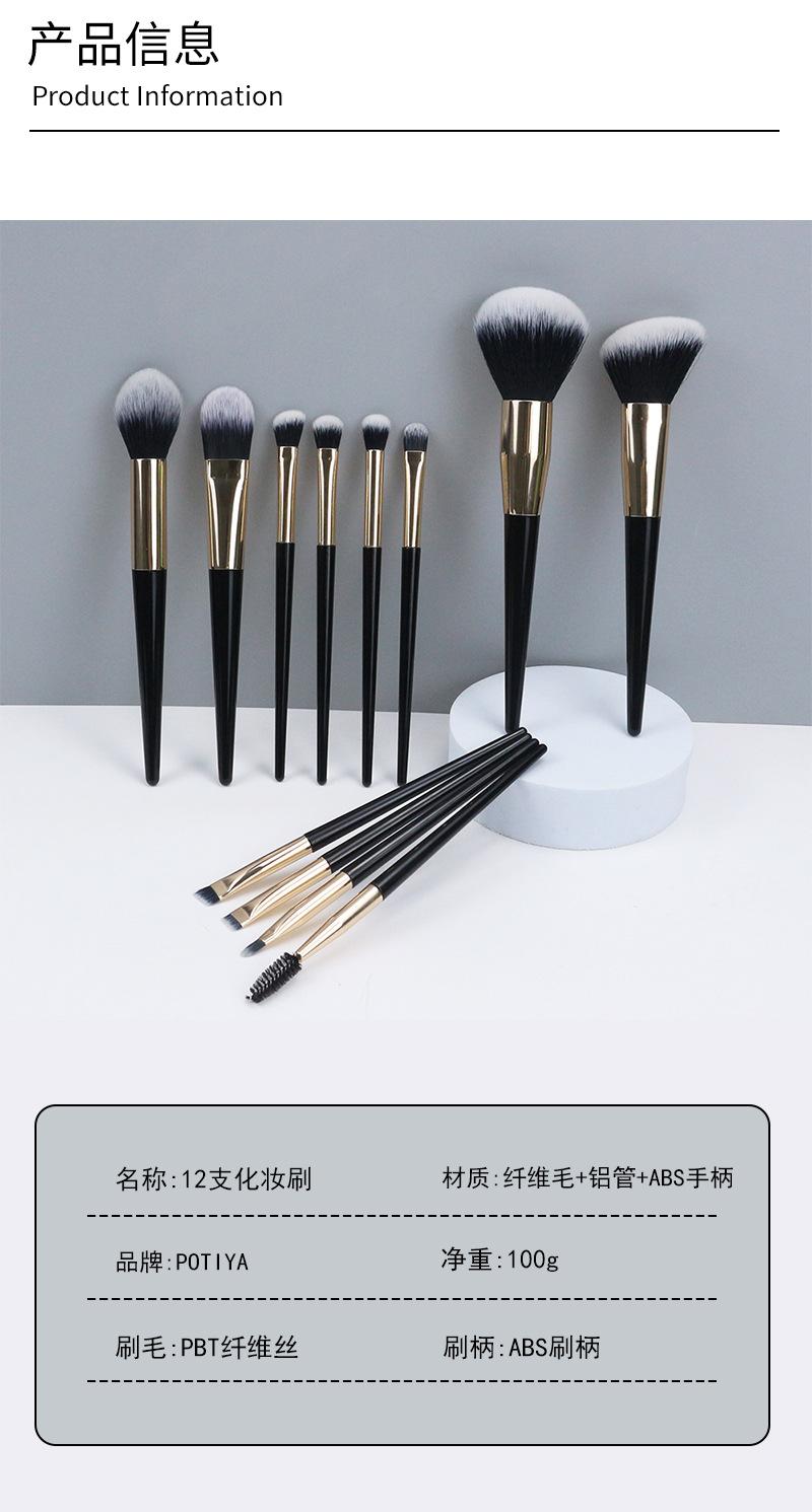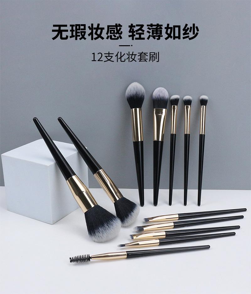 Novo conjunto de ferramentas de maquiagem completo de 12 peças para maquiagem transfronteiriça, preto e dourado, portátil, cerdas macias, fabricante de pincéis de maquiagem