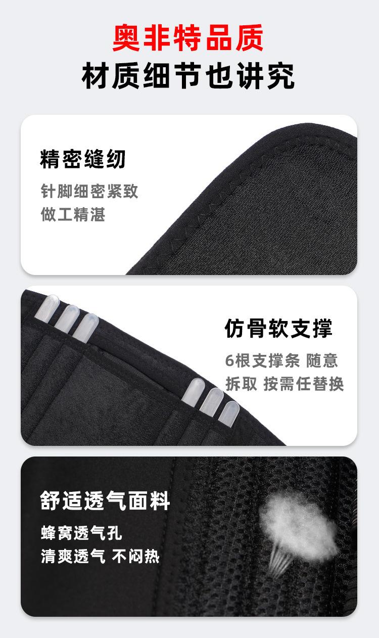 A Aofite lançou o novo cinto AFT-Y111, que pode ser produzido em duas cores pretas. Ele tem 6 tiras de suporte PP na cintura, que podem ser puxadas para fora. O design de velcro pode ser coordenado em tamanho e é mais fácil de usar. Este modelo é um novo modelo doméstico. Novos e antigos são bem-vindos. Os clientes escolhem!