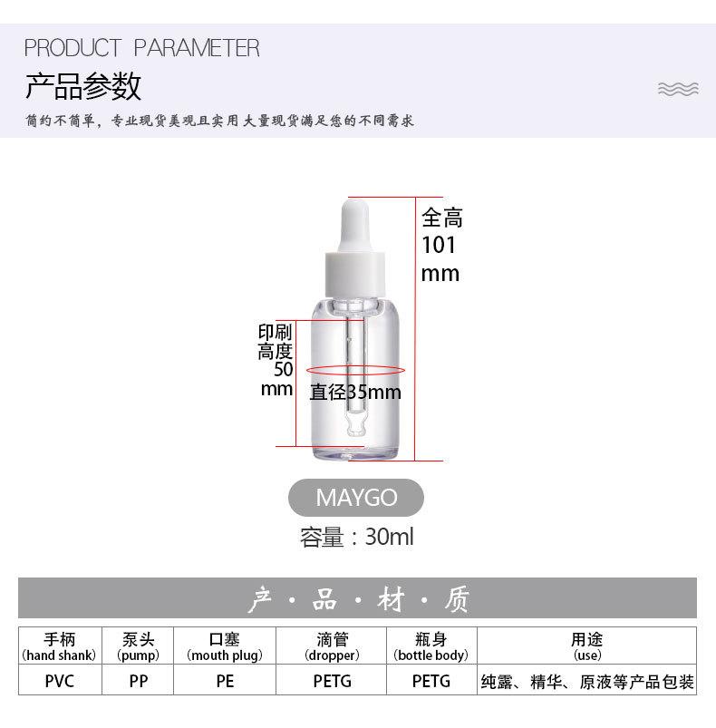 PETG garrafa de óleo essencial cosmético 30ml garrafa conta-gotas de parede grossa garrafa de essência de fundo grosso garrafa conta-gotas de embalagem