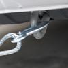 Amarre uma extremidade do cabo de reboque na extremidade dianteira da placa de aço do eixo traseiro do carro dianteiro e a outra extremidade no carro traseiro, sob a saliência dianteira, o mais próximo possível do centro do veículo. Os dois veículos devem estar separados por mais de alguns metros. É melhor amarrar um lenço no meio do cabo de reboque como marca de identificação.