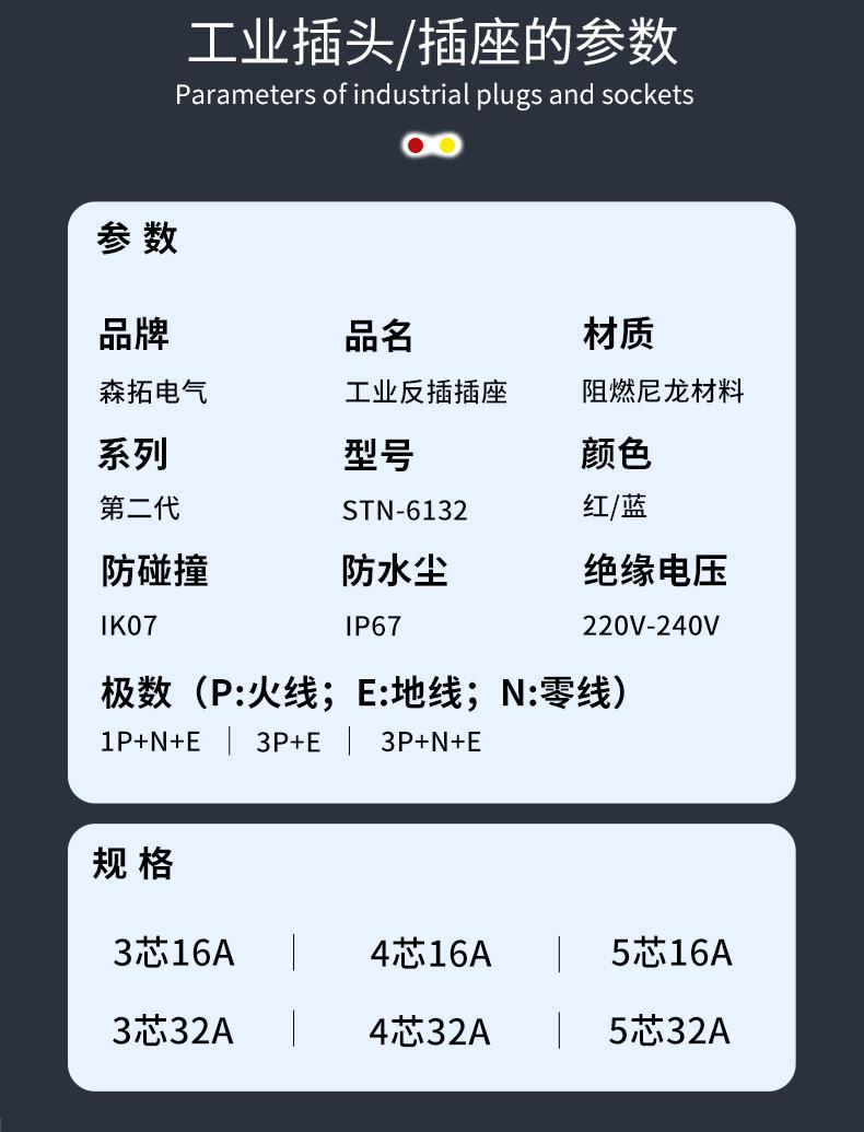 3-core 16A surface-mounted reverse insertion, 4-core 16A surface-mounted reverse insertion, 5-core 16A surface...
