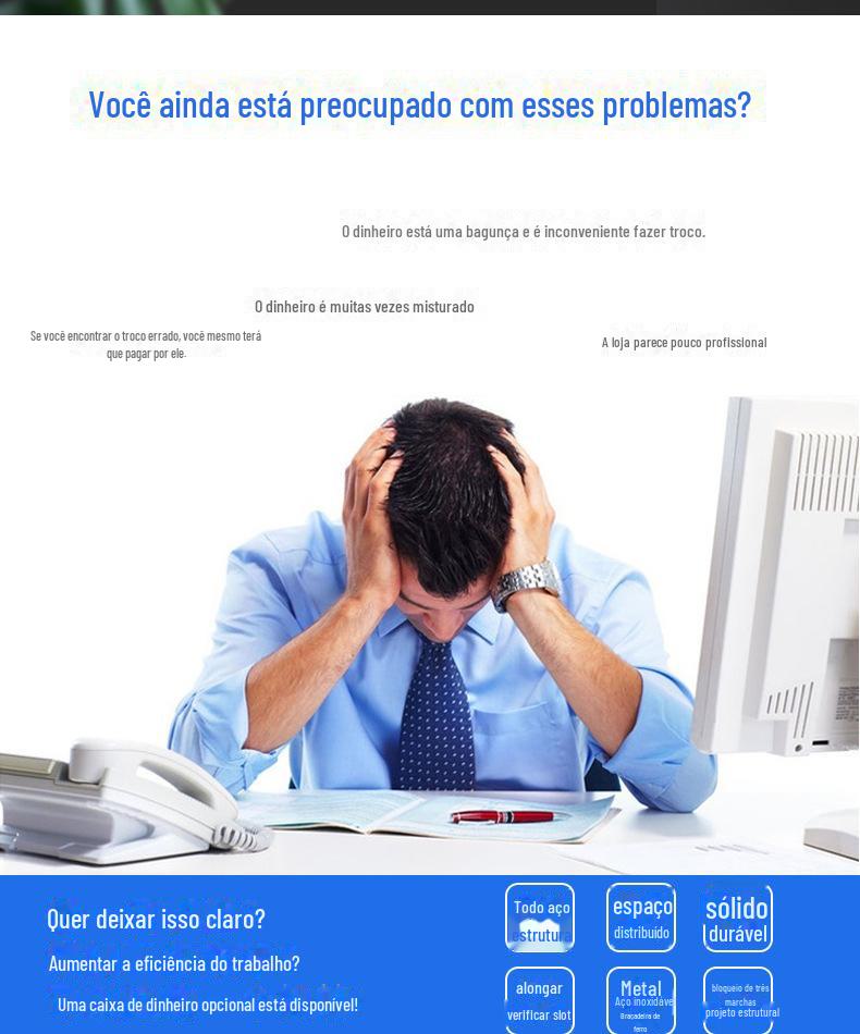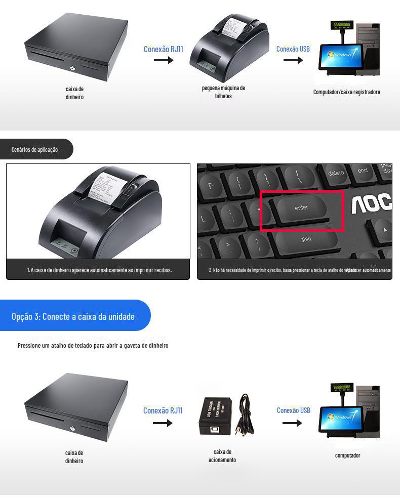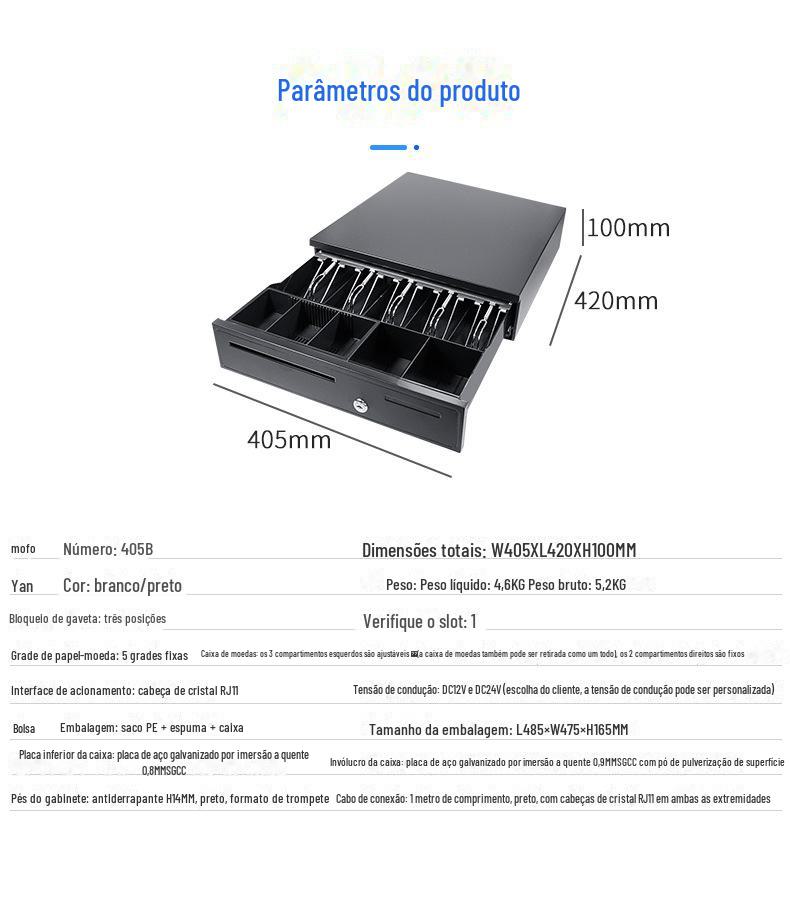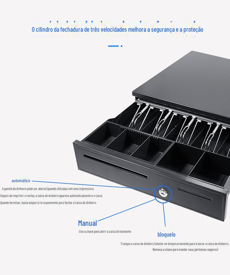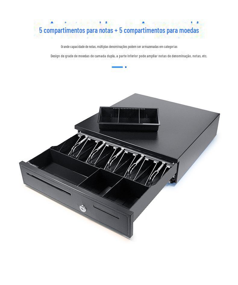 Gaveta de Dinheiro para Caixa Registradora de Supermercado Youku 405B com Cinco Compartimentos e Três Níveis, 5 Compartimentos para Cédulas e 4 Compartimentos para Moedas