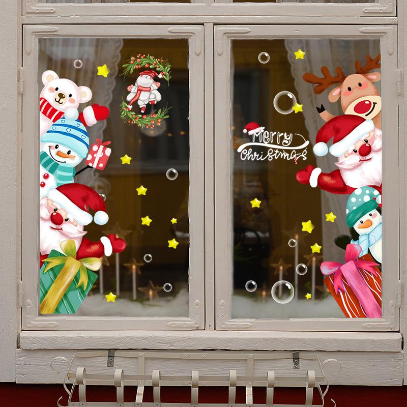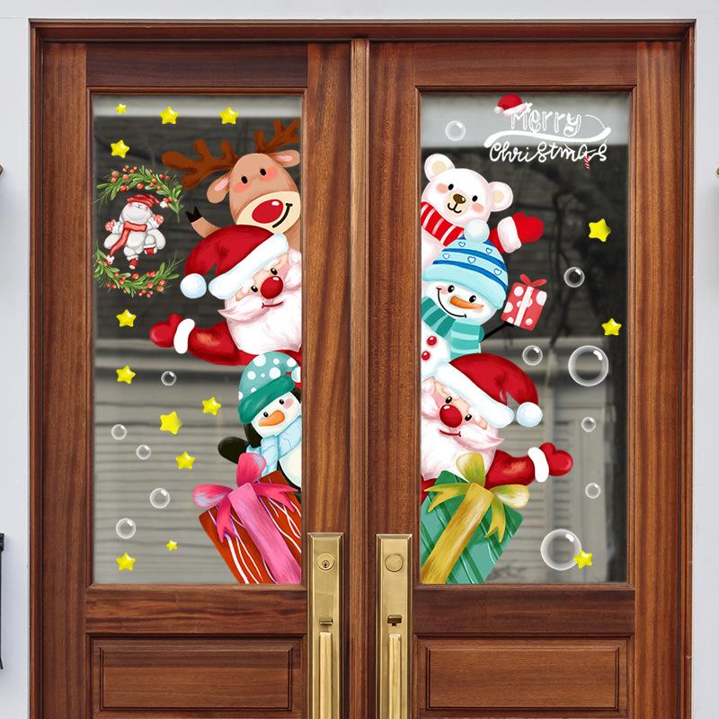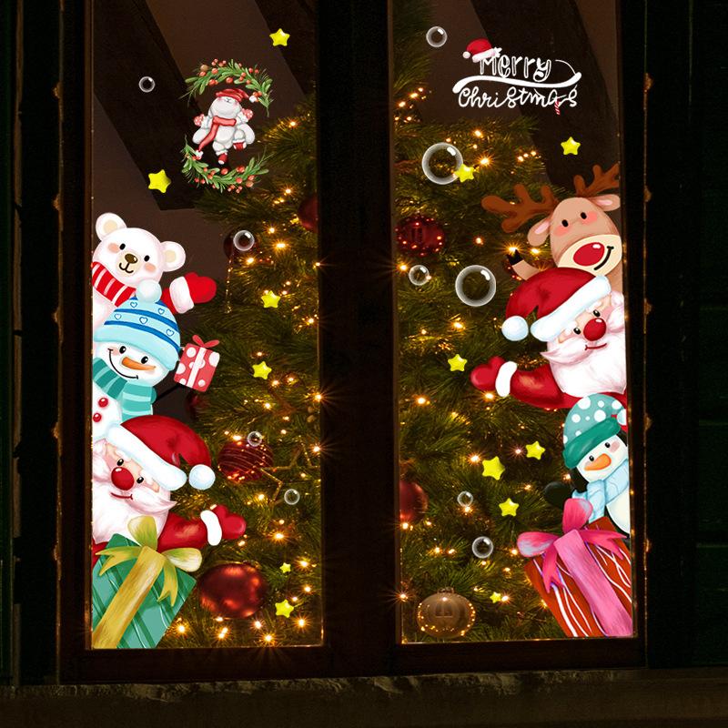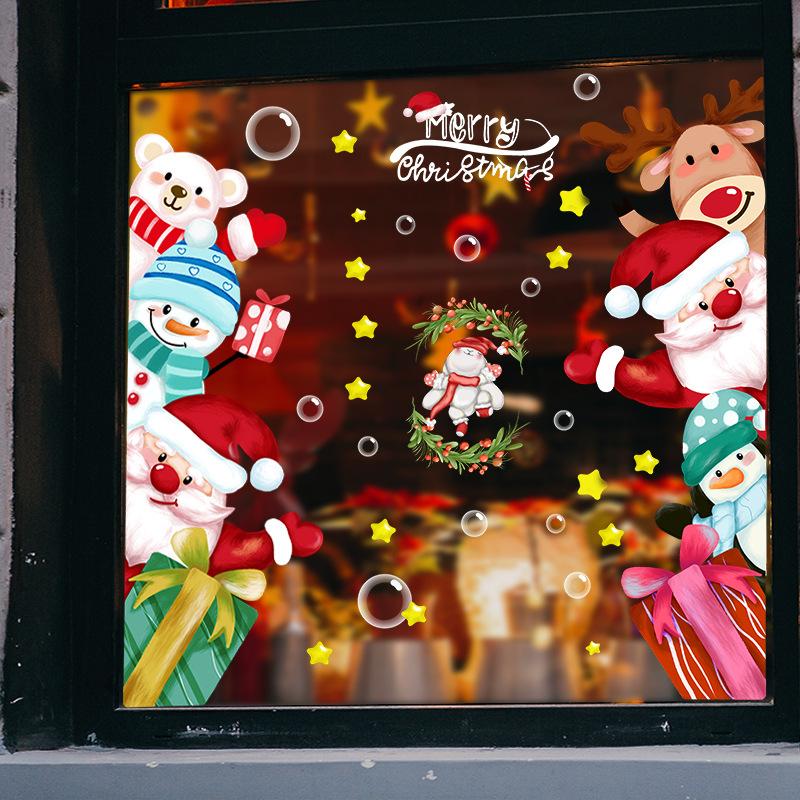 XMAS1001 estático UV desenhos animados Papai Noel adesivos de vidro adesivos de janela adesivos de porta adesivos de decoração de casa adesivos de parede autoadesivo