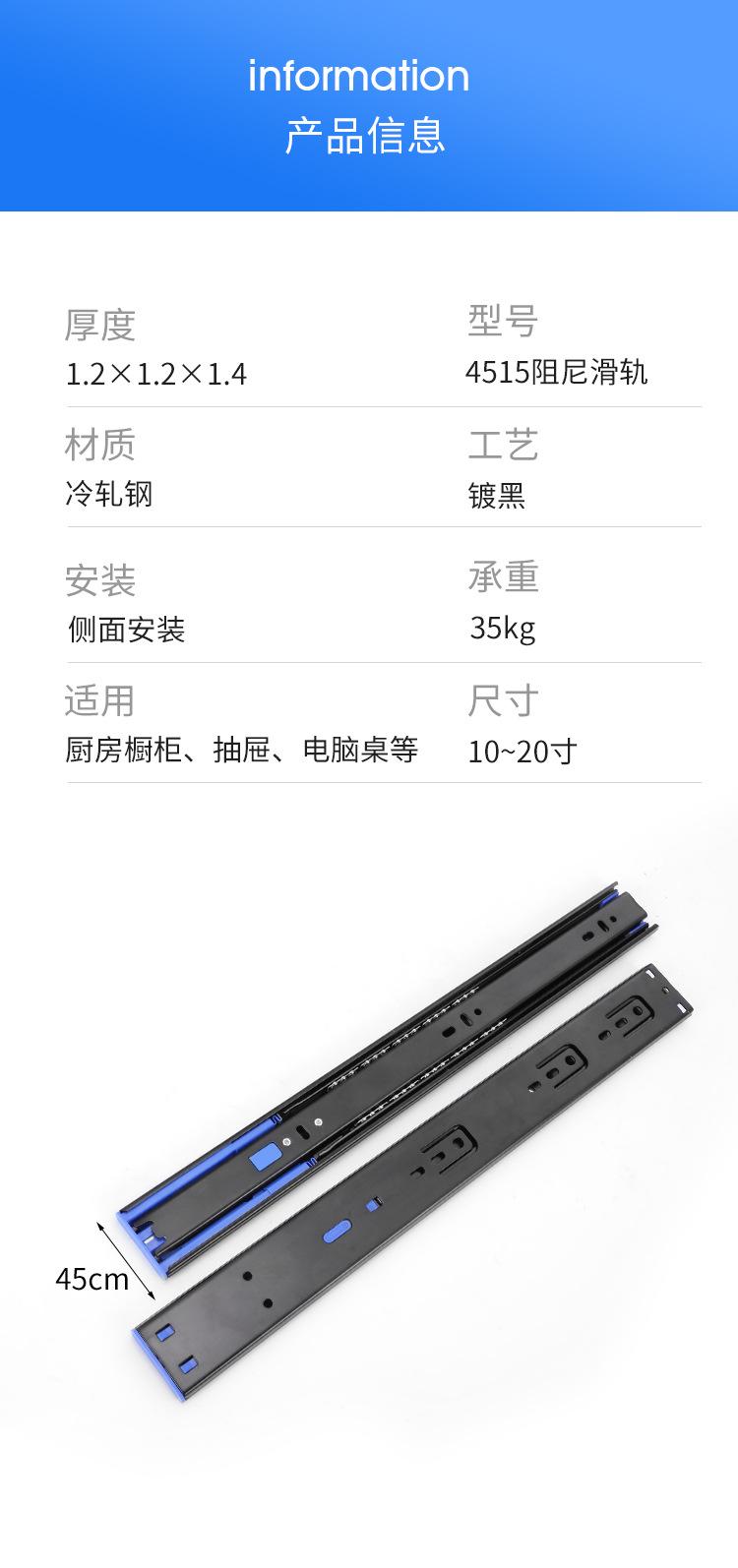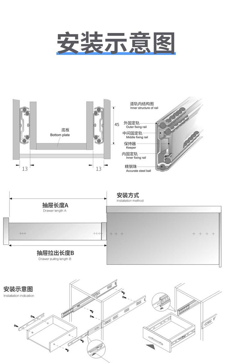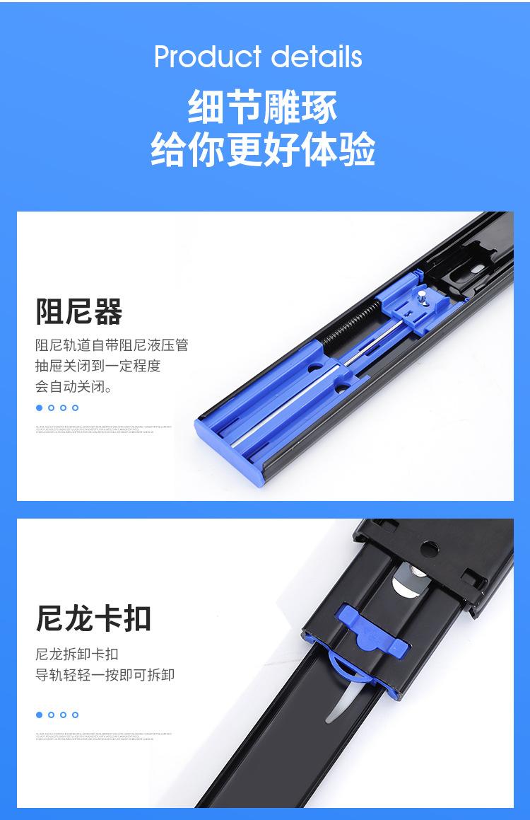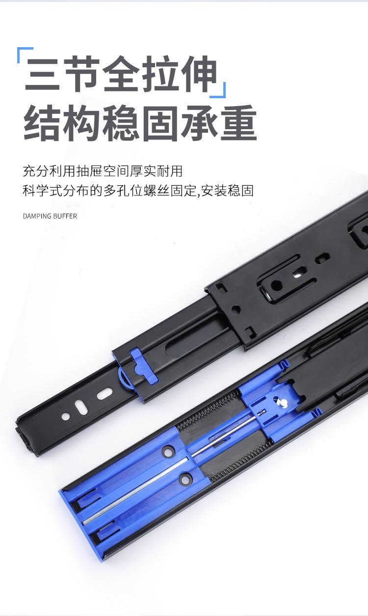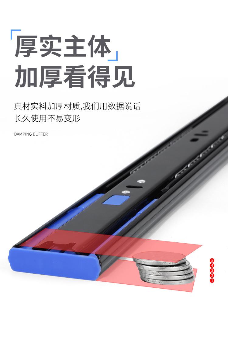 Jincaisheng Aço Laminado a Frio Espessado Silencioso Três Seções Trilho Amortecedor Buffer Deslizante de Gaveta Rolamento de Esferas Trilho Guia de Retorno