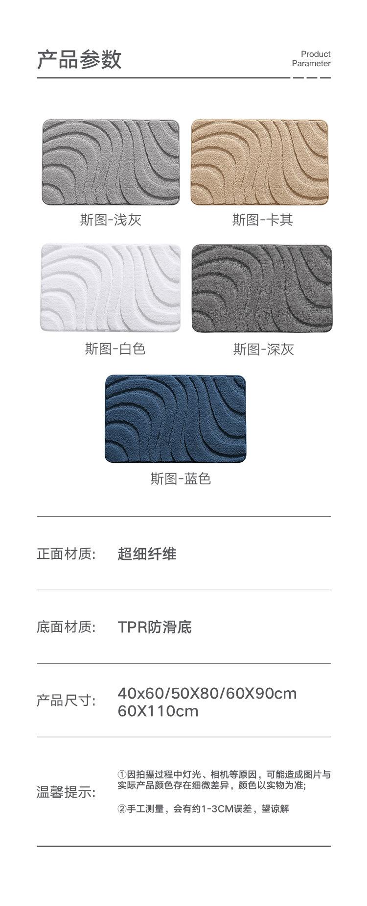 Tapete de banheiro de cor sólida, simples, alto e baixo, de secagem rápida, antiderrapante, para uso doméstico, de alta e baixa densidade, da Dajiang Cross-border