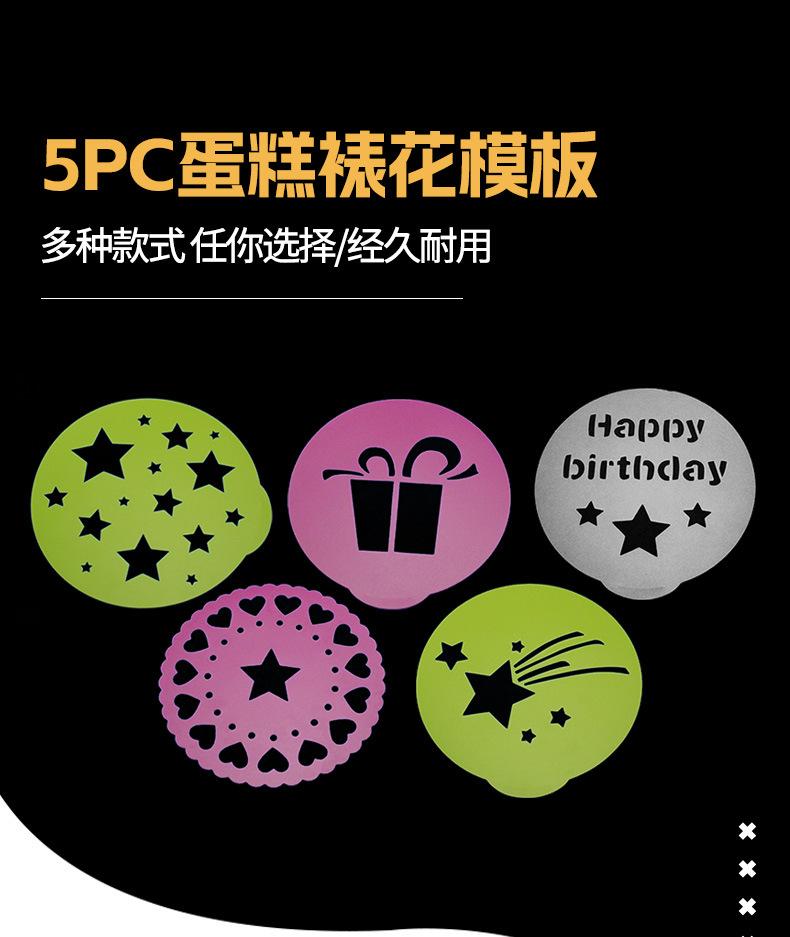 Conjunto de 5 Peças Molde de Bolo Molde de Impressão para Bolo de Aniversário Molde com Padrão de Polvilhamento Pó de Estrela Sobremesa Venda Quente Transfronteiriça