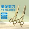 Conjunto de tesouras dentárias pretas de corte plano para barbeiro, pintura doméstica especial de 6 polegadas para cabeleireiro, corte de cabelo e tesouras de desbaste