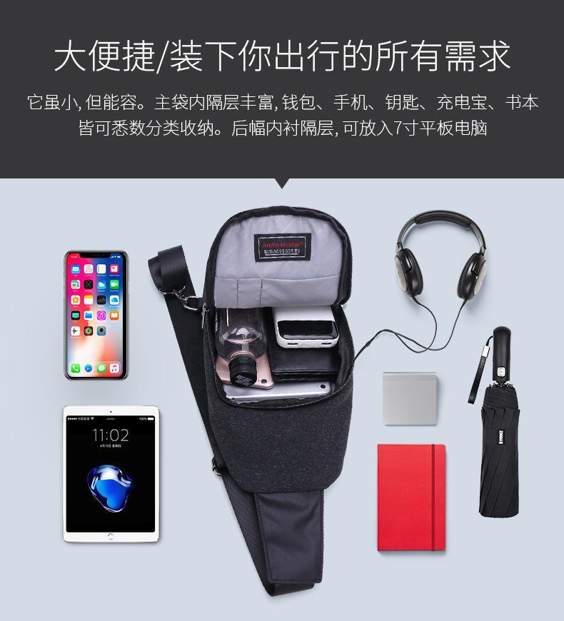 Bolsa de Peito Masculina, Bolsa Transversal de Ombro Único, Mochila Esportiva Moderna, Bolsa Masculina Casual Multifuncional Resistente à Água, Bolsa Transversal Impermeável Fashion